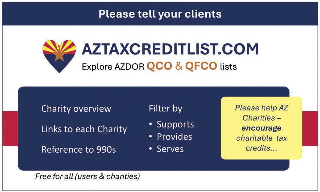 Earn one hour of CPE credit in specialized knowledge by completing the AZ CPA Quick Quiz, available online. Receive a score of 70 percent or more about this issue’s articles for credit. It’s that easy!