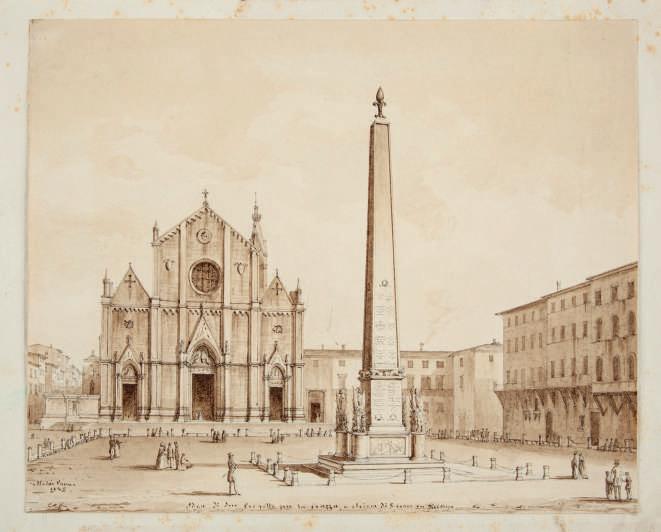 Influenzato durante gli anni della formazione dal classicismo di stampo batoniano Fedele Fischetti in questo disegno mostra tutti i debiti evidenti alla scuola romana piuttosto che a quella napoletana. I tratti leggeri ma incisivi che indugiano sui volti dei personaggi che animano la piccola scena le linee che contornano le fronde e le foglie della vegetazione e la solida colonna che fa da quinta architettonica alla scena ricordano la produzione grafica dei grandi capostipiti del filone classicista settecentesco.