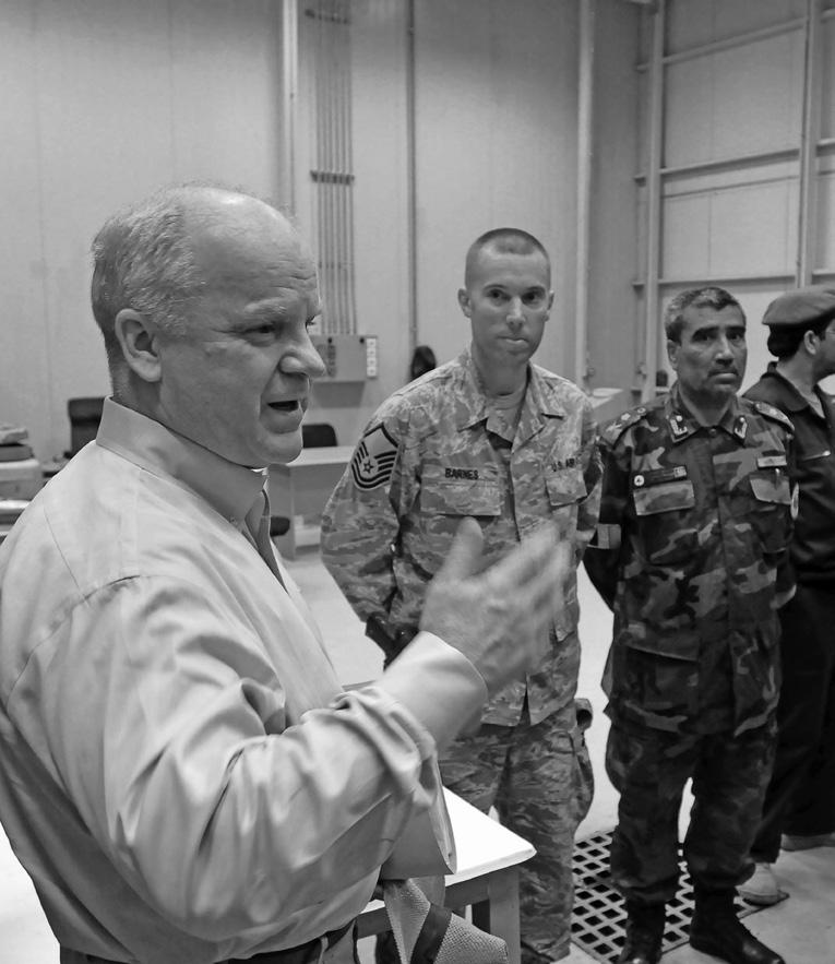 Page 26: Col. Thomas x. Hammes (Ret.), Senior Research Fellow at the National Strategic Studies, National Defense University, right, participates in a discussion with service members from U.S. Air Force and the Afghan National Army Air Corps about the development of the Air Corps over the last few years. Hammes visited the Air Corps base in Kabul, Afghanistan on April 21, 2010. (US Navy photo by Mass Communication Specialist 2nd Class David Quillen)