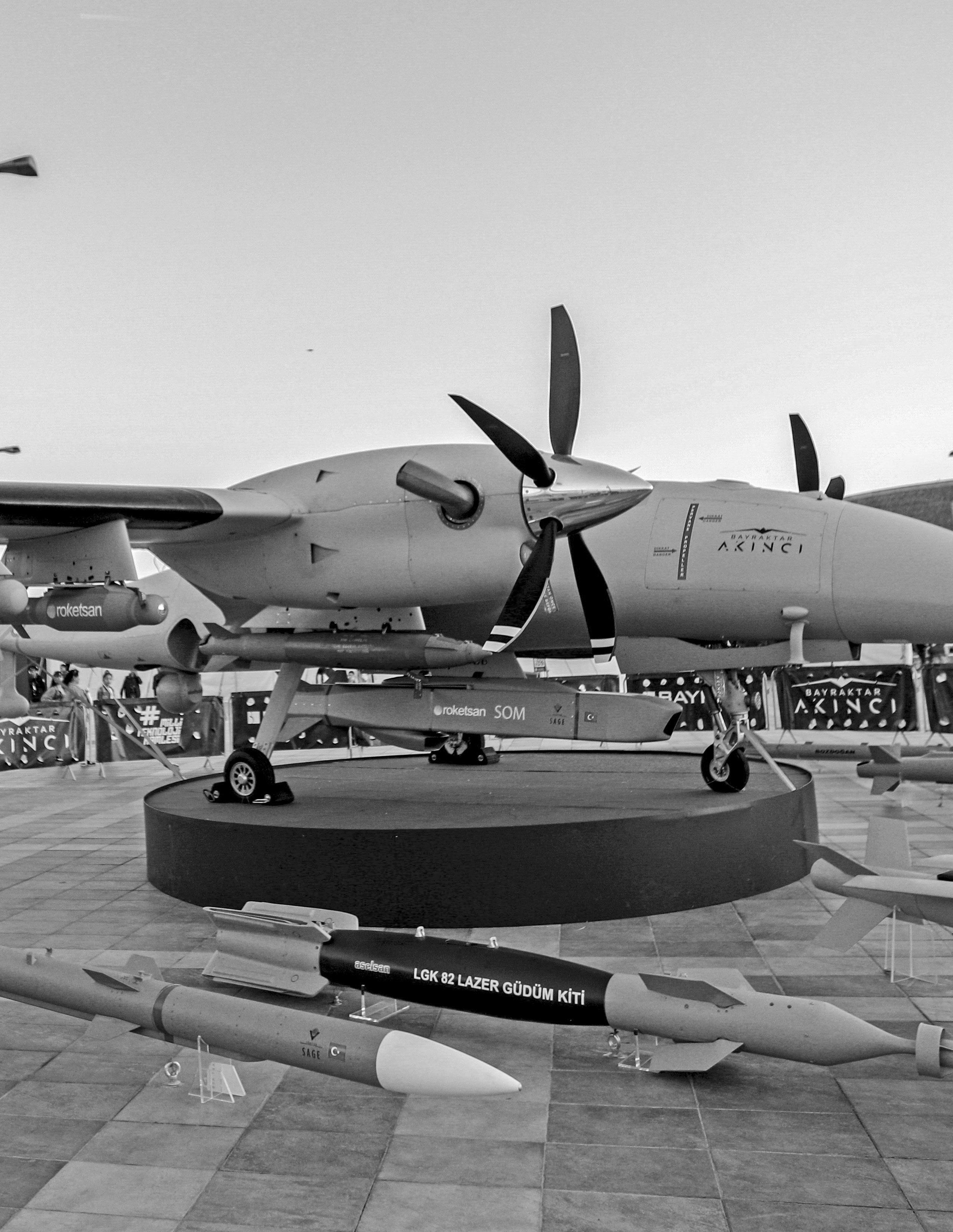 The Akinci is an interesting example, as it illustrates how the Turkish DTIB is evolving around highend platforms. Akinci’s weapon systems configuration, featuring Turkey’s first aeroballistic missile, TRG-230-İHA, and a stand-off missile (SOM) baseline of cruise missiles, transforms the platform into a deep strike asset. The high-altitude long endurance (HALE) drone can also fly up to 40,000 feet (out of the engagement envelope of short-to-medium air defense systems). Looming large as one of the most capable platforms in the Turkish export portfolio, Akinci has started to leave a footprint in the international weapons market. In the summer of 2023, Baykar signed a historic export and coproduction deal with the state-owned Saudi Arabian Military Industries for local production and technology transfer. Roketsan and Aselsan, the primary manufacturers of the platform’s critical weapon systems configuration and sensors, were also included in the deals.