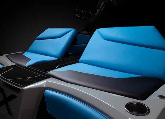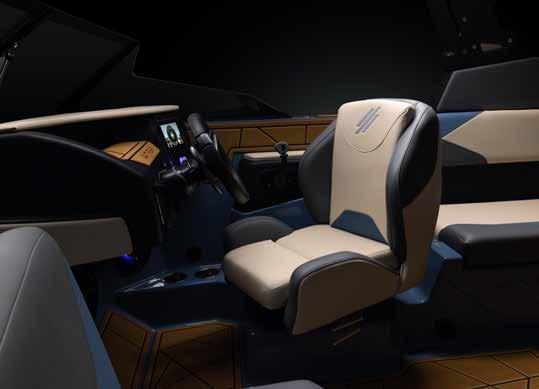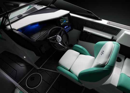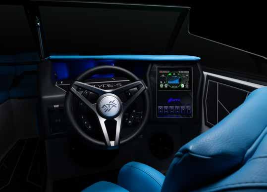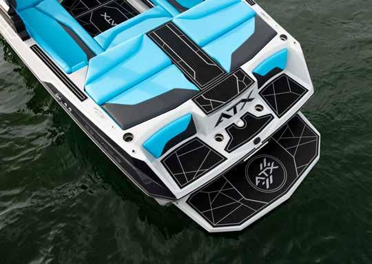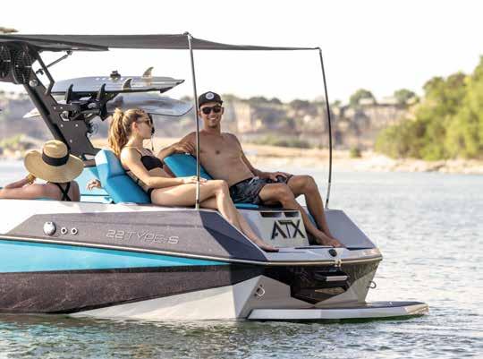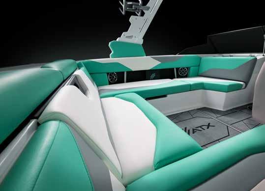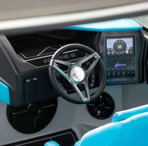 Take a seat at the helm and enjoy a clean dash design and a clear view ahead. To the right is the ATXperience Control Center. Yes, it’s a full touch screen. And yes, it gives you full control of your boat and your day. The ReCline Captains Chair reclines, slides, and has a bolster—all standard on an ATX model. Other favorites include the switch system, inCharge phone holder, RearView Camera, Bluetooth connectivity, and the ATX keyless ignition.