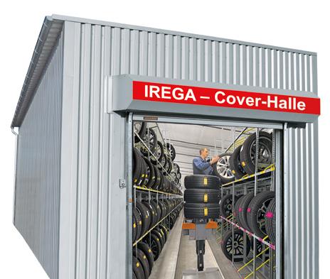 La halle couverte Irega avec son système de stockage garantit le succès de votre commerce de roues.