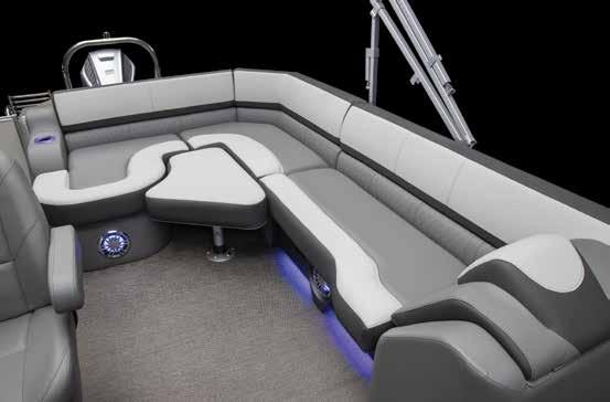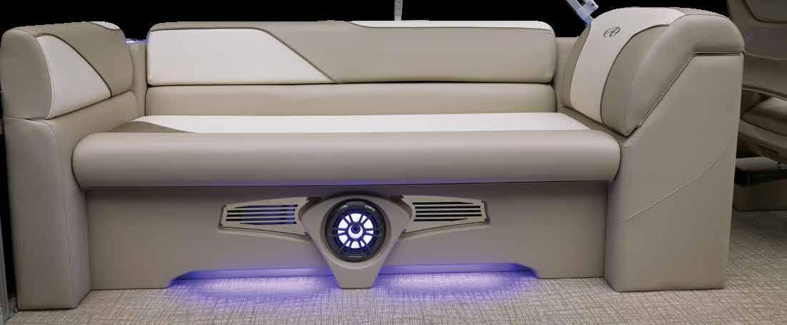 • Premium sound package: Fusion RA-770 radio, (6) Fusion SG RGB-lighted speakers & grills, Fusion 6-channel amp, Fusion D mono block digital amp, 10” Fusion Subwoofer, USB audio input & charge