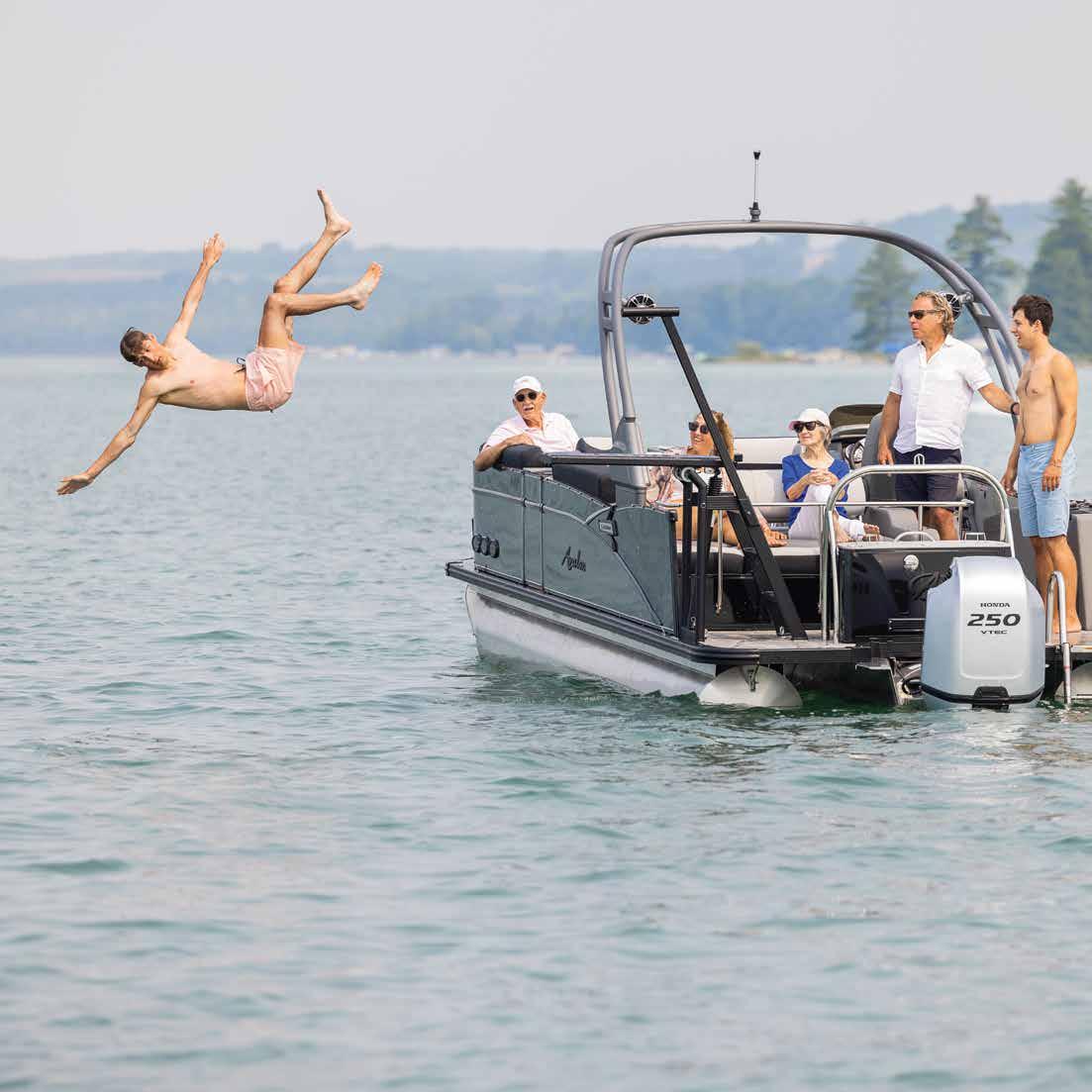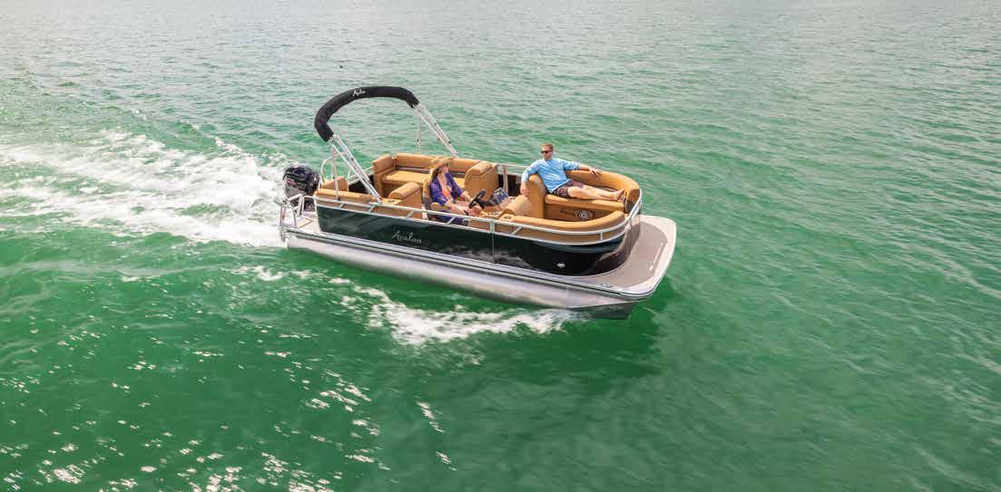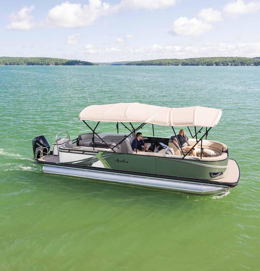Dimensions, capacities, ratings, and additional specifications plus complete warranty and service information are available from your Avalon dealer. Product illustrations and data within this catalog are based upon information available at the time of publication. Avalon reserves the right to make changes without notice or obligation. Ask your local Avalon dealer for the most current product specifications prior to purchase. Some of the equipment shown separately or on products illustrated in this catalog may be optional at extra cost. All Avalon boats meet or exceed the standards established by the ABYC and USCG flotation, fuel systems, ventilation, electrical, and safety.