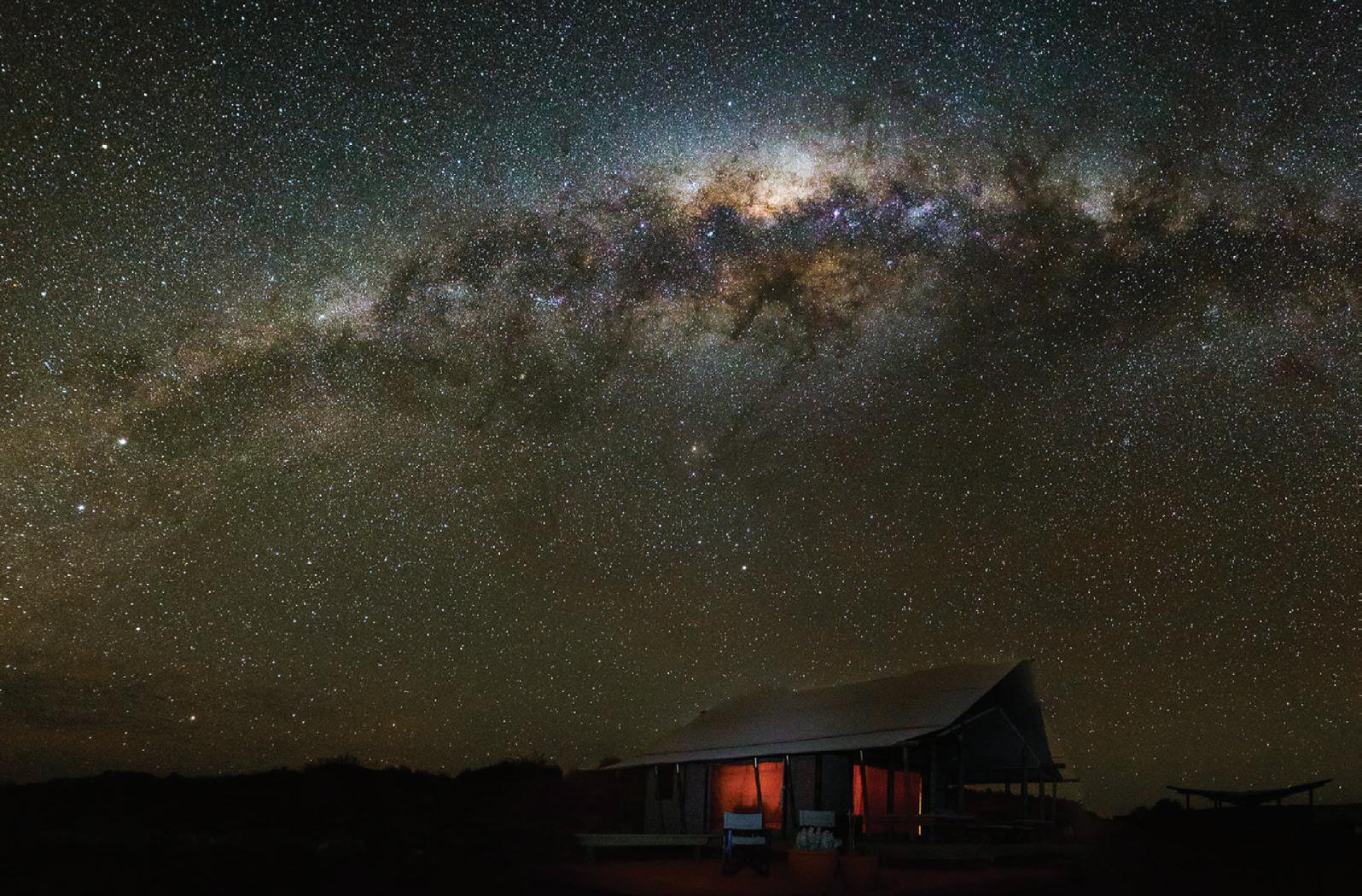 At Wolwedans (www.wolwedans. com) in Namibia’s NamibRand Nature Reserve, another certified Dark Sky Reserve, lighting is minimal and discreet. “Our guests dine by lantern light, and the stars become the entertainment,” says operations manager, Michelle Groenewald. “It’s a luxury you can’t replicate with electricity.”