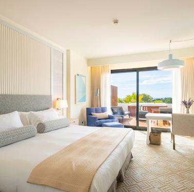 这家酒店拥有263间各具特色的客房和套房,每间都独一无二。酒店的设计 灵感源自地中海,旨在为宾客打造一个宁静舒适的度假天堂。客房内,定制 的织物、柔和的色彩和宽大的落地窗营造出温馨惬意的氛围。木质元素和色 彩的搭配致敬大海,简约的设计风格与自然光相得益彰,透过宽敞的阳台, 宾客可以尽情欣赏海景。