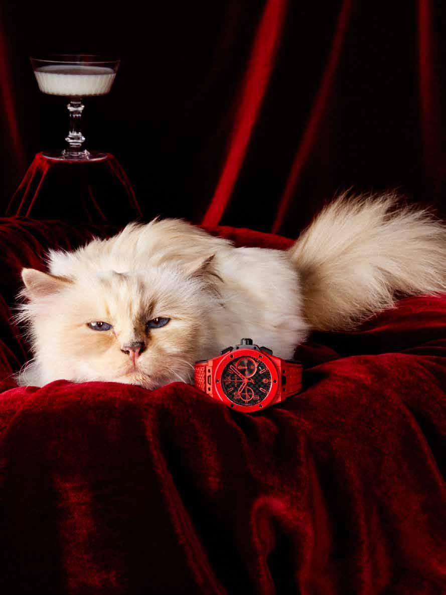 为庆祝 Big Bang 系列问世二十周年,瑞士先锋制表品牌 Hublot 宇舶表以 一位万众瞩目的“猫界超级巨星”——Choupette(史上最受欢迎的网红猫 咪)担纲主角,展开一场意想不到的跨界合作。此次出镜,Choupette 携手 宇舶表,将魅力与叛逆态度集于一身,为这家勇于挑战制表传统的品牌献上 了一份别具一格的生日礼。