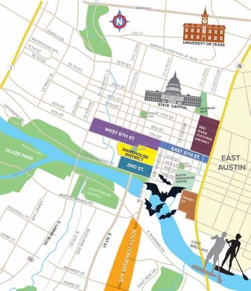 SOUTH CONGRESS Chances are, if you’ve been to Austin, you’ve been to this funky stretch south of the river lined with quirky shops; lots of restaurants, bars and coffee shops; and myriad murals that make a walk here Insta-worthy, for sure. Pop into Café No Sé for premium baked goods and
