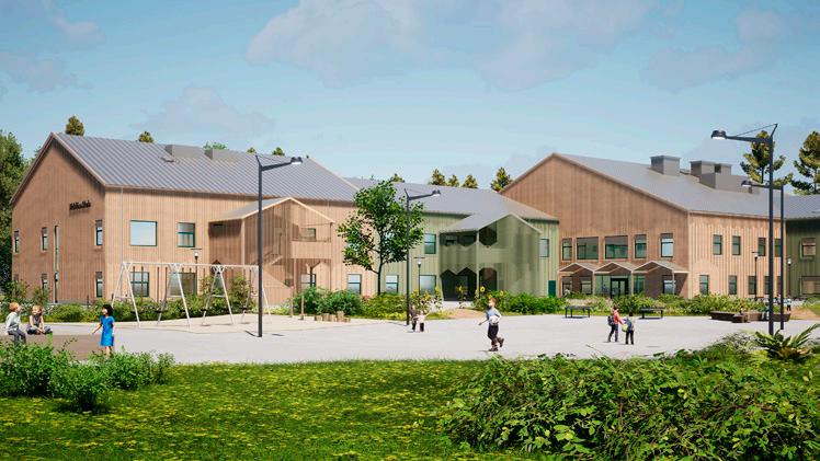 Projektet har bland annat valt en hybridglasfasad med stor andel trä och hög andel