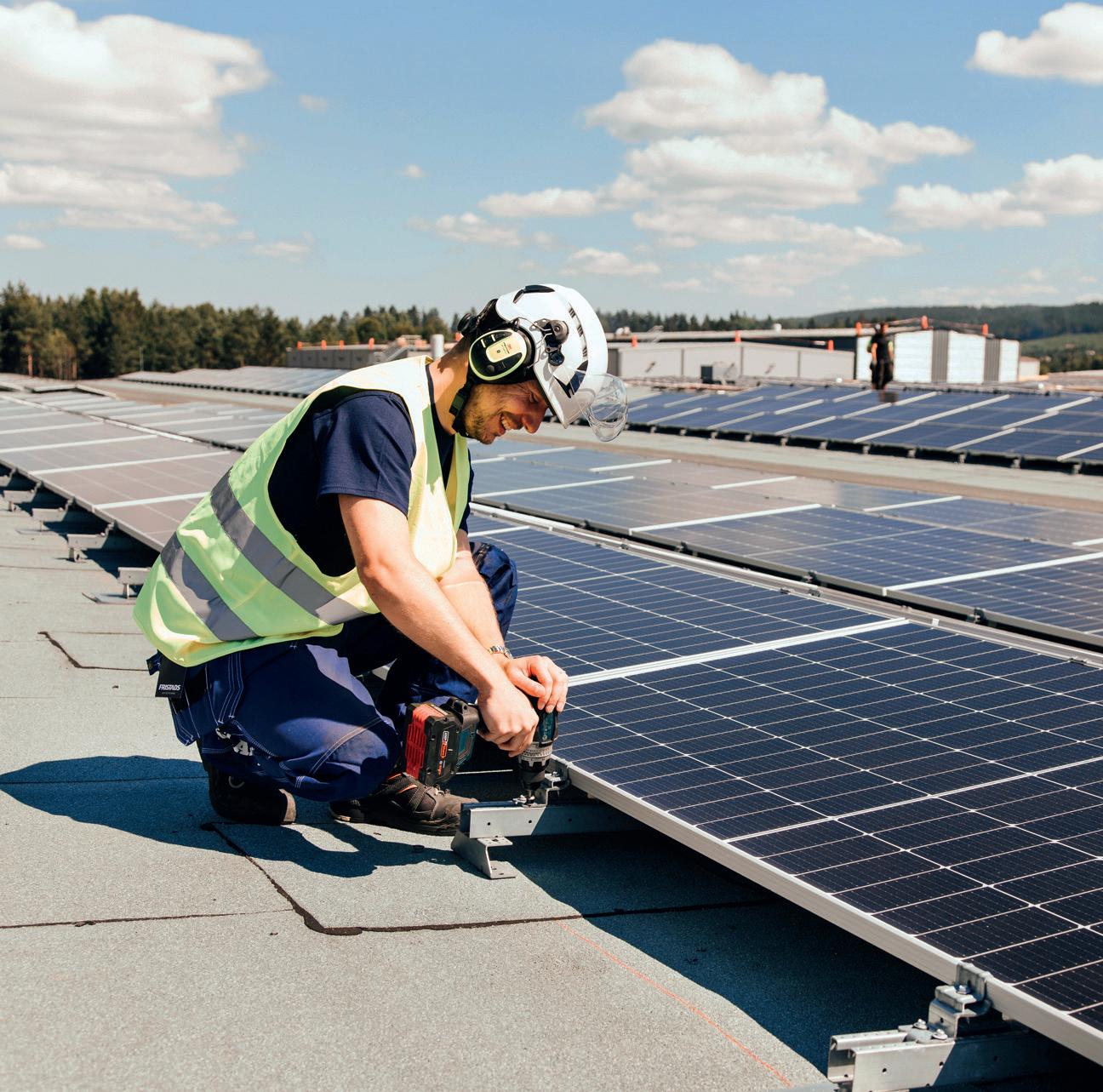 För oss är funktion och säkerhet alltid i fokus. Vårt nya system för låglutande solpaneler på släta tak passar alla typer av solpaneler. Fästena monteras på skena vilket ger ett sammankopplat system med få infästningspunkter. Våra infästningssystem är utvecklade för att klara det tuffa nordiska klimatet med både snö och hårda vindar. På vår hemsida hittar du mer information om alla våra produkter och en återförsäljare nära dig.