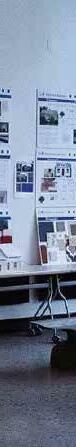 Image: Class projects on display in Gatewood Atrium collectively showing each groups’ model, home, redesign, sustainability features, and material boards. The results were on display for transparency to the public and to invite administration conversations around preservation and rehabilition of these homes.