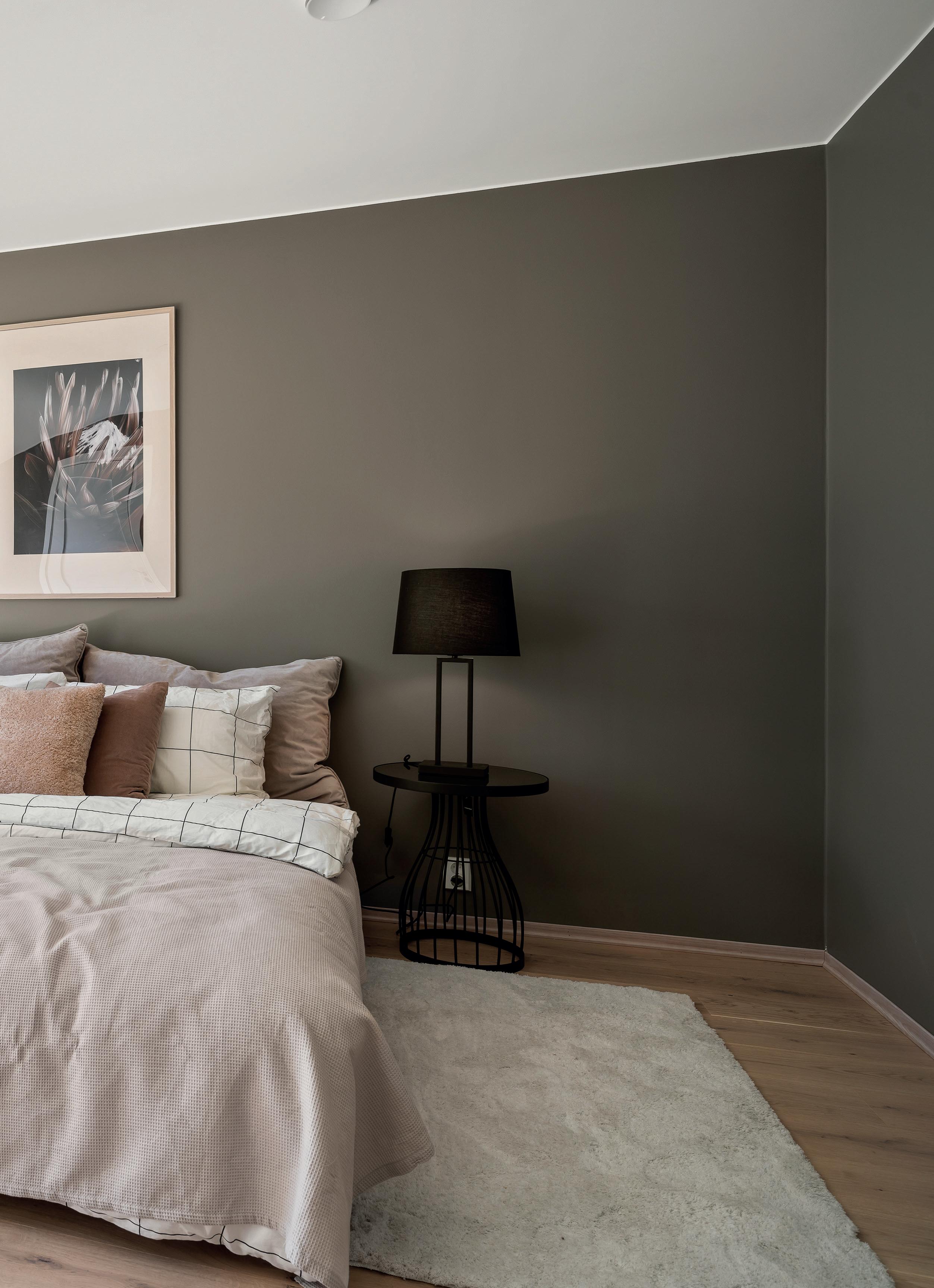• Alle vegger i ganger, trapperom, stue og kjøkken er malt i fargen «Blek Sand NCS S2005-y20R». Vegger hoved soverom i plan 2 er malt i fargen: Comfort NSC-5504-Y24R.