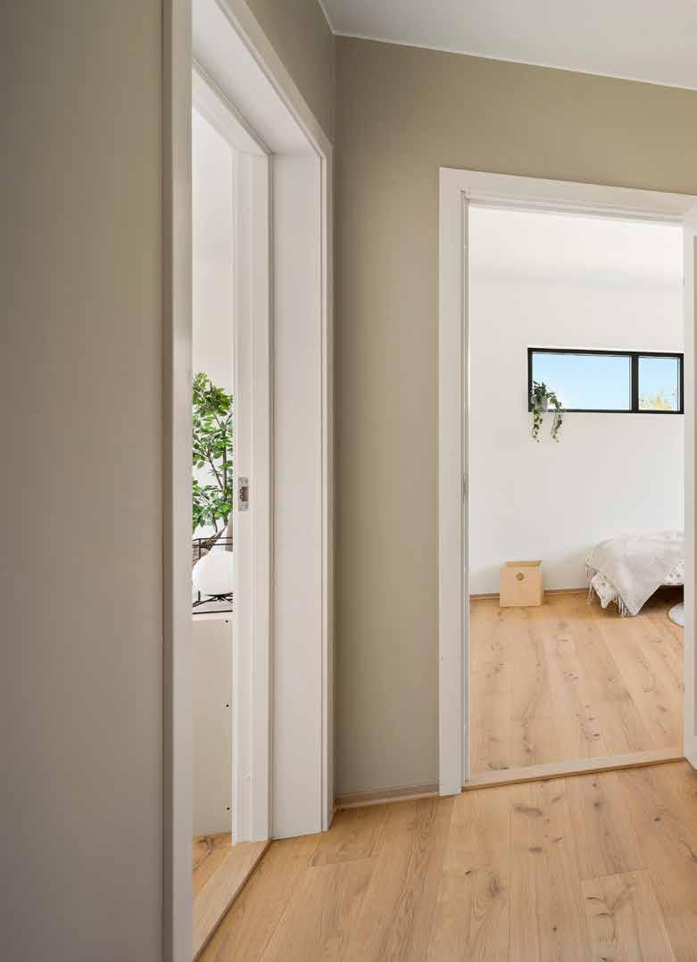 • Alle vegger i ganger, trapperom, stue og kjøkken er malt i fargen «Blek Sand NCS S2005-y20R». Vegger hoved soverom i plan 3 er malt i fargen: Comfort NSC-5504-Y24R.