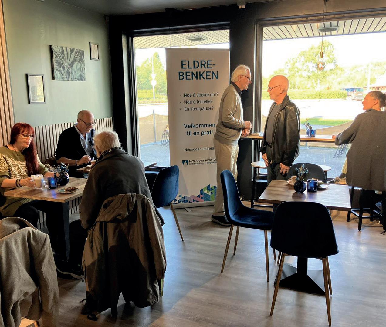 I samarbeid med kommunen og Nesodden eldresenter arrangeres «Eldrebenken». Da kommer det en gjeng seniorer hit. Flere bor på eldrehjemmet og kommer seg ikke så ofte ut på kafe og restaurant. Det er tydelig at de koser seg veldig når de kommer hit for en kaffe, smørbrød og kanskje en kake.