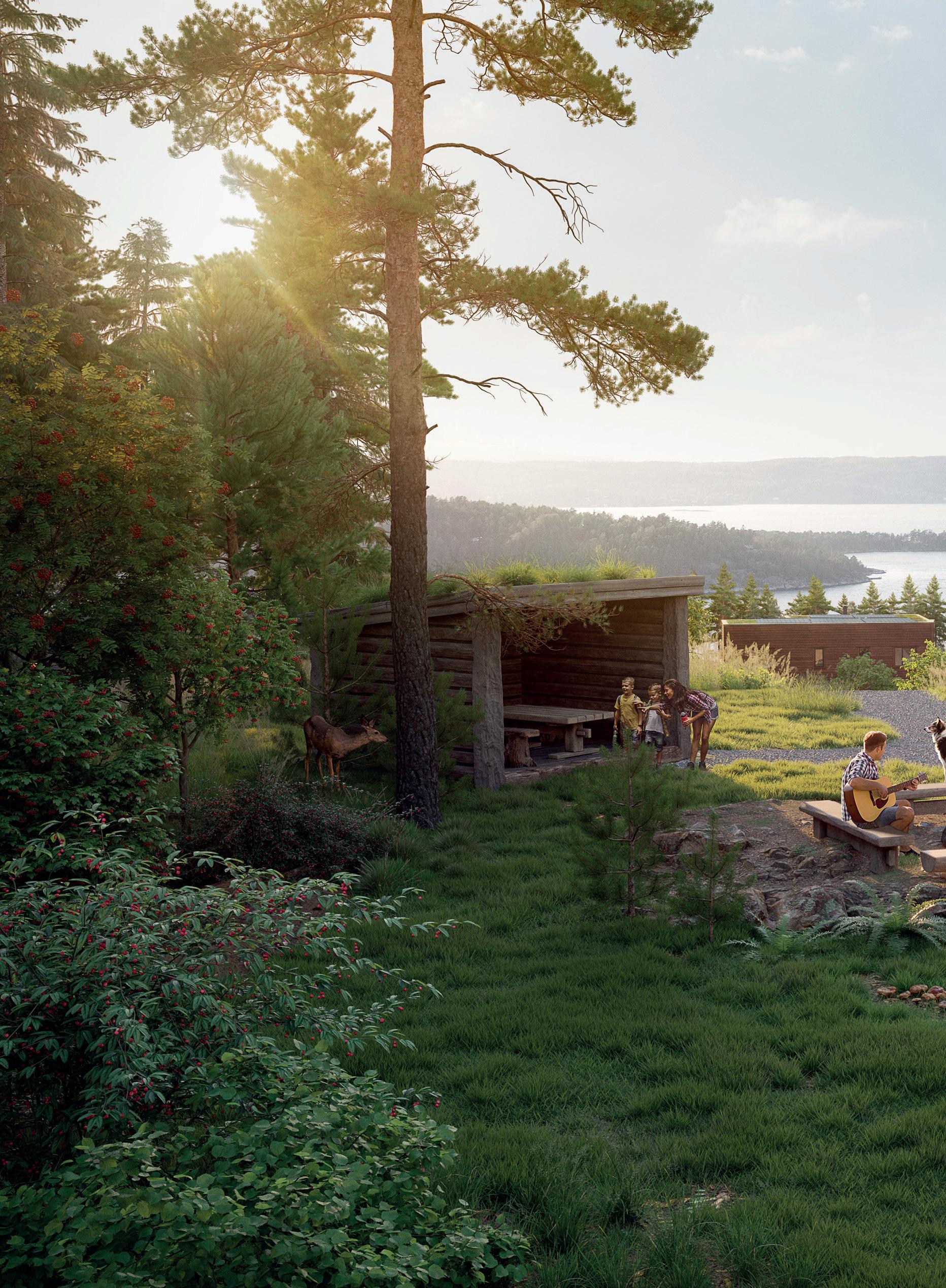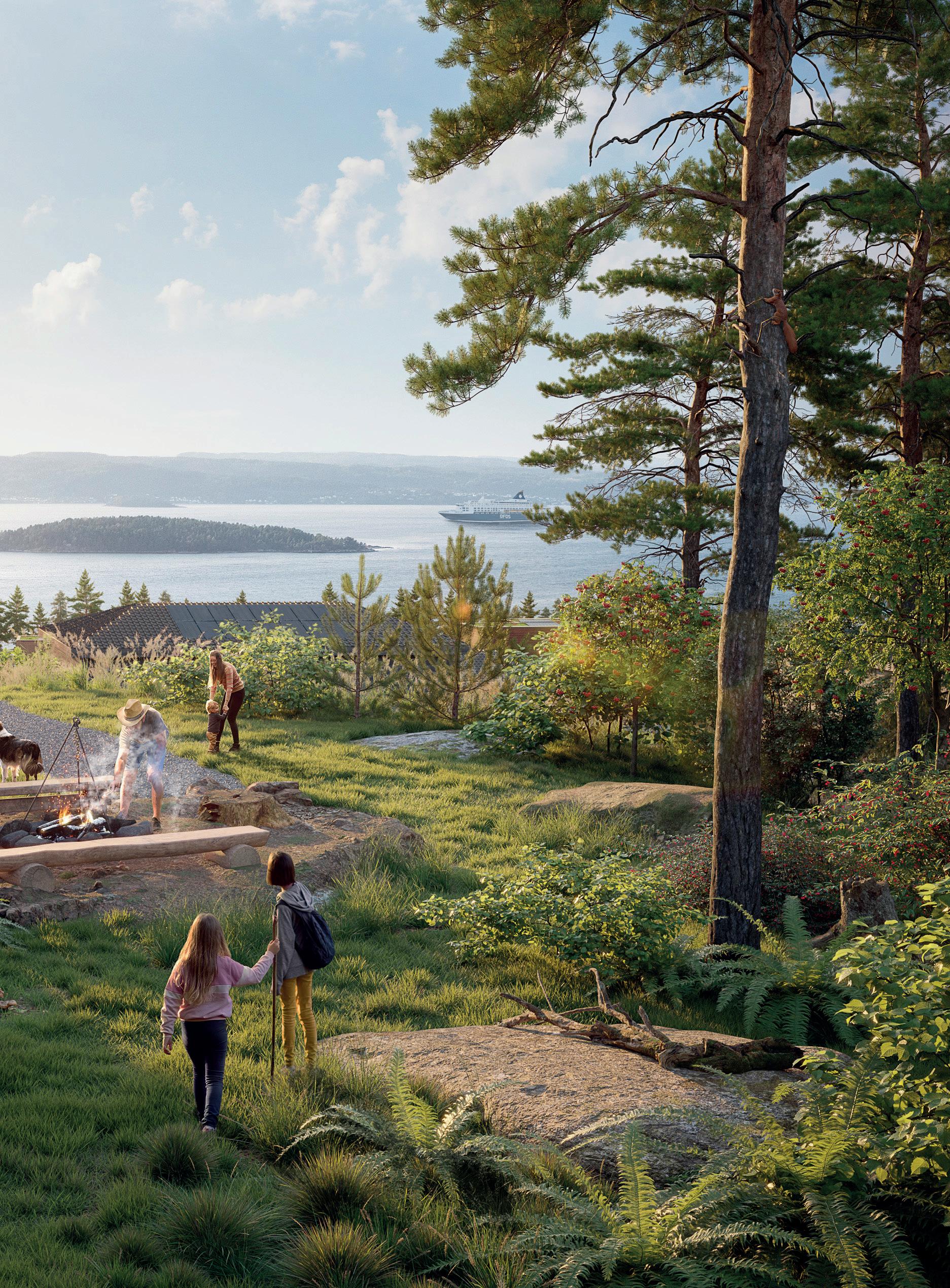 Det skal være godt å bo og leve på Strandlia uansett alder. Vi har tilrettelagt for sosiale møteplasser og fine utsiktspunkt. Blant annet kan vi nevne ballbinge som kan benyttes som skøytebane vinterstid, lekeapparater, en trivelig grillplass og ulike sittegrupper. Boligene er plassert fornuftig i terrenget, og det i et herlig norsk fjordlandskap.