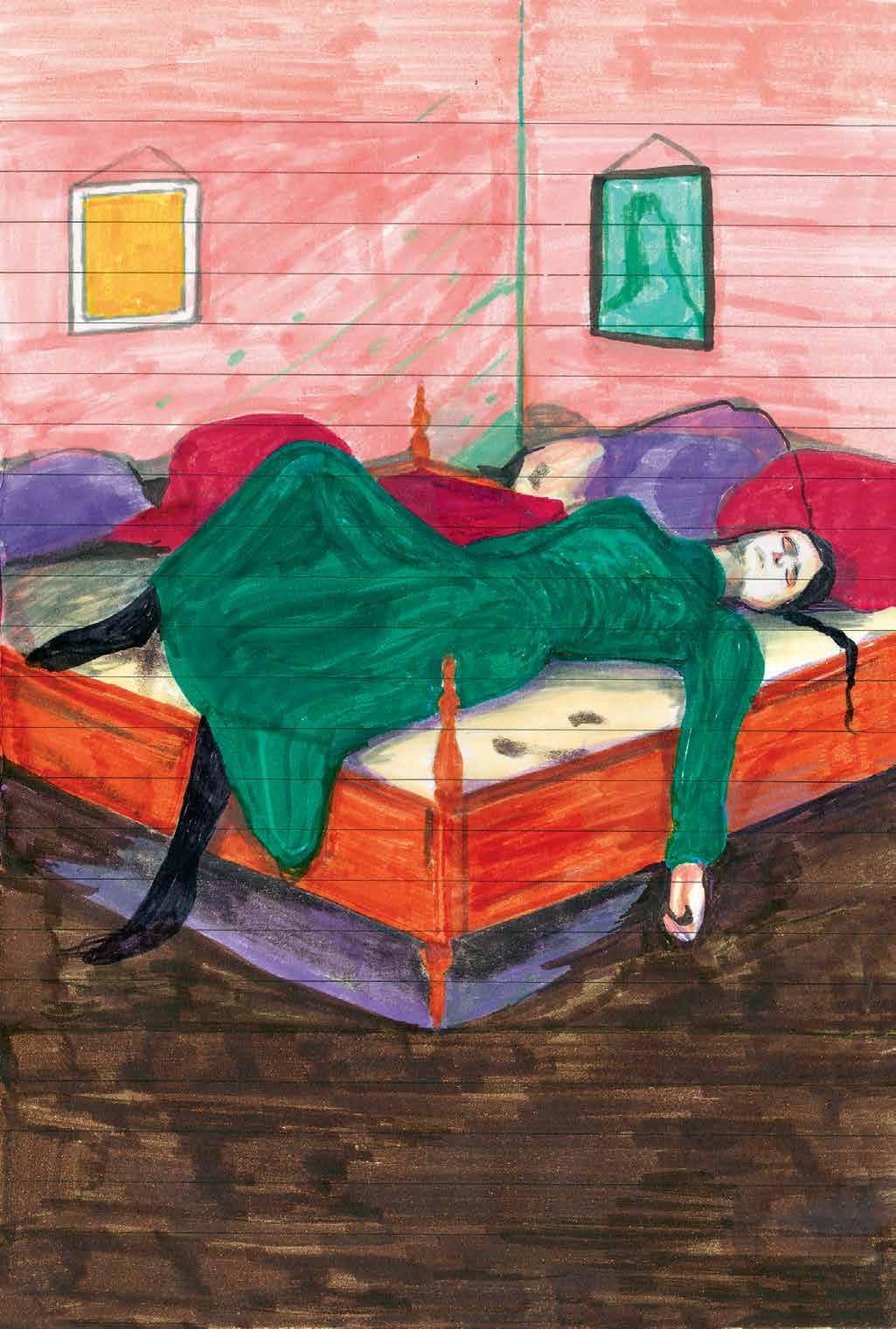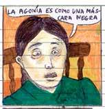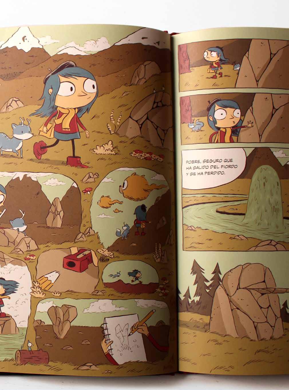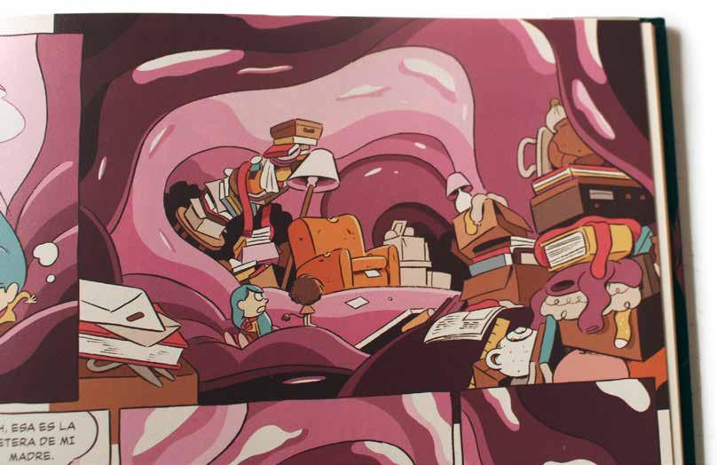 completo el dibujo y el modo de mostrarnos la historia. Las imágenes están construidas con lápices de colores, dando un toque “infantil” que contrasta totalmente con la trama, incómoda y desasosegante. De nuevo, toma temas que la sociedad se empeña en censurar y los pone sobre el papel de forma cruda y directa. La protagonista, Claudia pende en el equilibrio entre el pasado y el futuro, entre el deseo de anularse en una relación y el miedo a no estar a la altura de sus deseos, entre el teatro y la magia. La artista, una vez más,