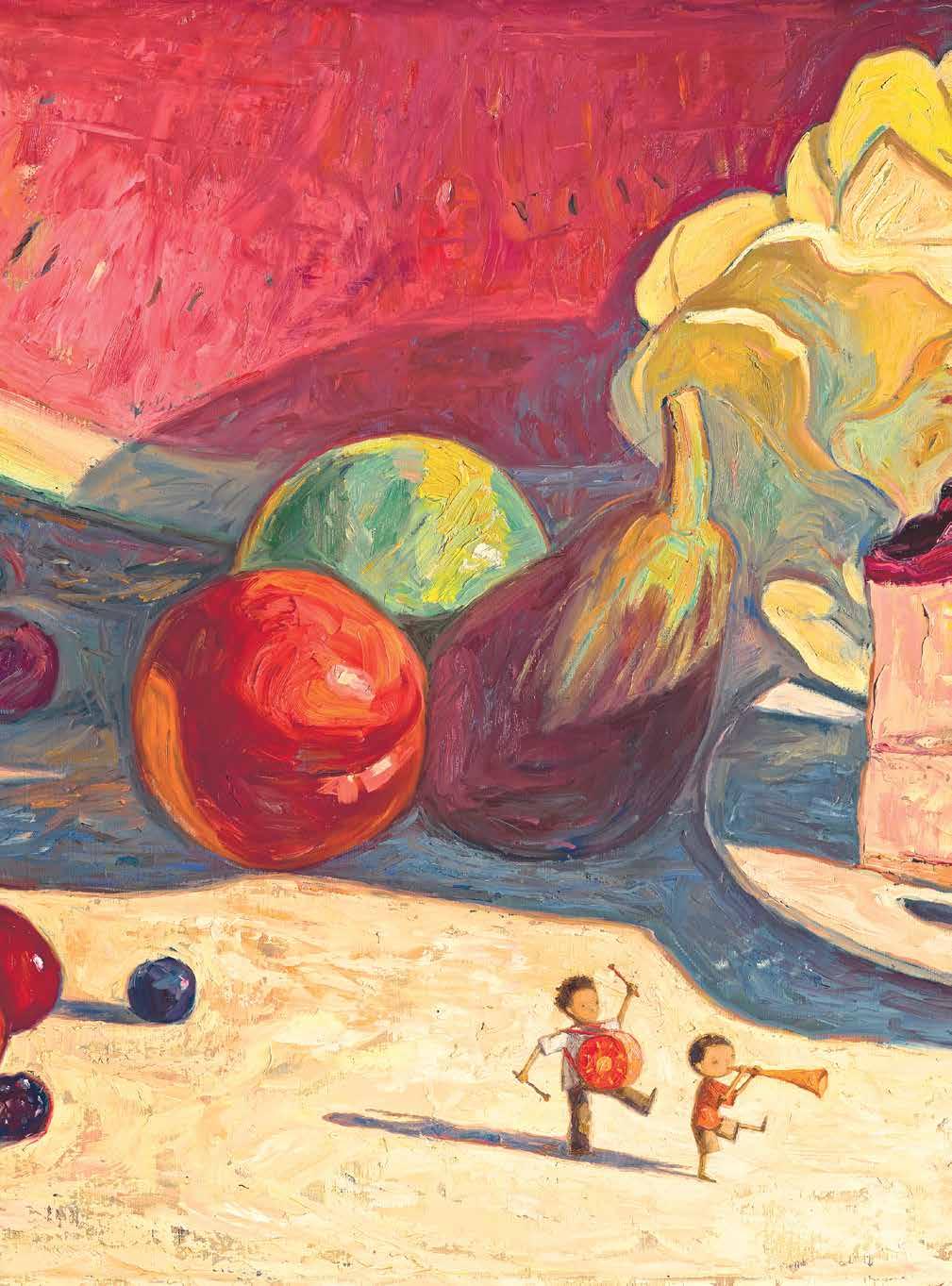 “Los hilarantes juegos en el pleno verano y Vivaldi. Me imaginé este encuentro entre ellos. Cuando estaciones de Vivaldi fluía por como gotas de agua y en las Ahora, señores lectores, les