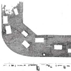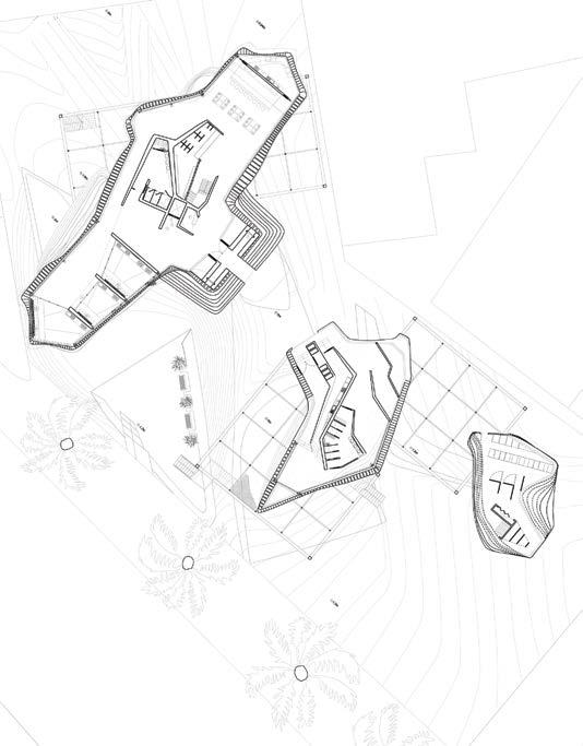 point clouds. The specific nature of the process results in an articulated roof-scape formed of louvres designed to rotate along a horizontal axis in order to align shadows with non-vertical surfaces down below. As the objects come closer to point of sale, the digital reconstruction becomes both more accurate and of higher resolution. The breakdown in the relative scale of the stolen goods (a distortion of perceived dimensions that occurs within website frames) is simulated in real life through anamorphic arrangements of the objects within the building. Roofscape and structured light scanning louvre test models. Fig. 4.6 Matthew Lyall, San Francisco Police Department Auction House. Roof plan of building.