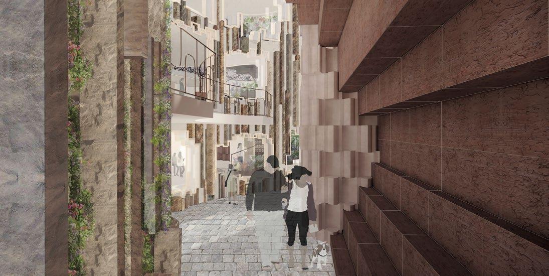 3, 6, 11, 16 Alastair Ang, Y3 ‘Square Mile Circular Housing’. This project proposes a circular, sustainable retrofit of an office complex in London’s Square Mile –once Roman baths and the Coal Exchange – into mixed-use housing.