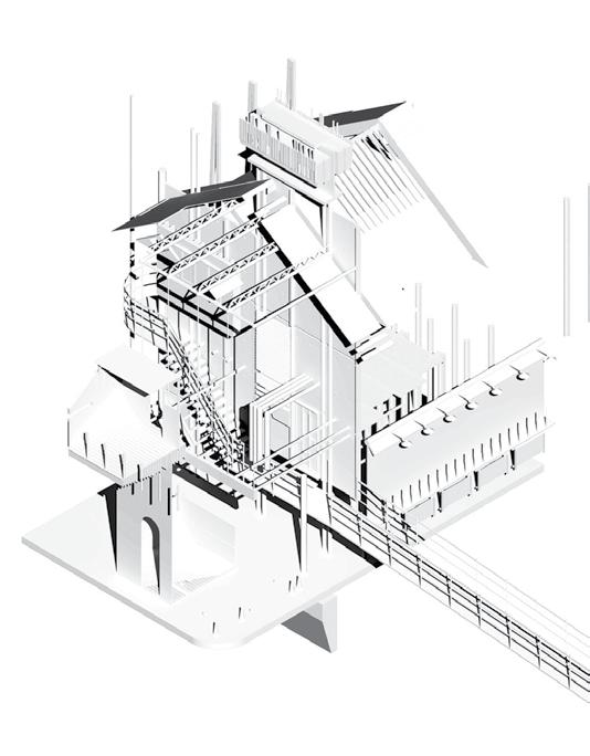 4.2, 4.9 Hannah Lingard, Y3 ‘On Common Ground: Establishing an Urban Commons for the Precariat’. ‘Precariate’ is a portmanteau combining the words precarious and proletariat. It is a term employed in the fields of economics and sociology to describe a new social class comprising people who experience various forms of precarity. This project proposes a programme that focuses on providing a space for this social class, that enables the users to articulate their own identity and establish a form of representation. The programme facilitates the idea of philanthropic endeavour, through welfare and enrichment spaces which the visitor can transition between autonomously.
