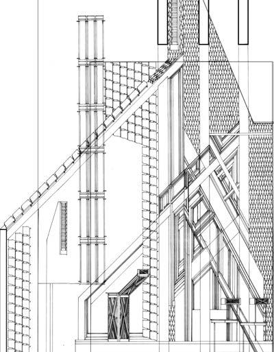 Fig 4 11 Naomi Gibson, The Conservation Officer developing a drawing convention for reading buildings on a site as a conglomeration of history Fig. 4.12 Naomi Gibson, The Conservation Officer a device for reading the historical and archaeological makeup of buildings on the site Fig 4 13 Naomi Gibson, Bankruptcy Hotel Deriving an architecture from the economic flux and flow of the Las Vegas casino hotel, the constant intake of money from hotel rooms to the huge spikes of spending on the casino floor and associated shops and bars Fig 4 14 Naomi Gibson, Bankruptcy Hotel section through the entrance and introductory rooms By using five key elements of the motivational speech, the architecture seeks to define moments of reflection and hope within its fabric that help to get families affected by the recession back onto their feet