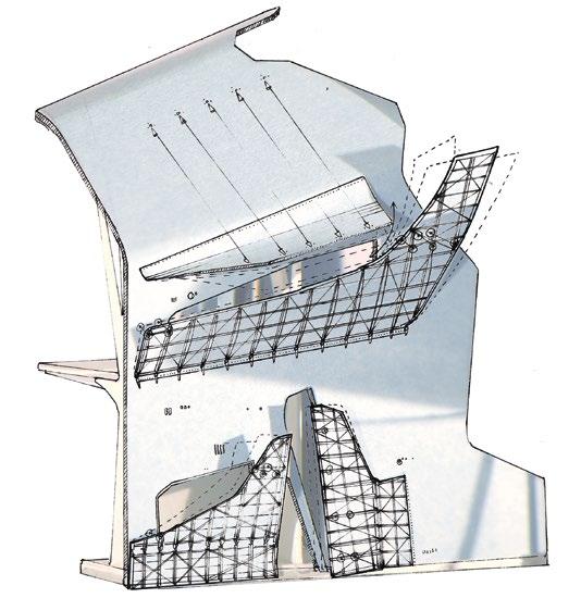 The structures of the Fallas festival (Valencia) combine architecture of popular parody with sophisticated systems of construction and industrial quantities of gunpowder, all integral to the creation of architectureas-ceremony. Gunpowder becomes the catalyst for the expression of a celebratory architecture during Fallas. In the seventeenth century it was considered to be the explosive force by which the muscles of the body moved. The architecture of “Character” forms at the interface of event, social collectivity and structure. In the modern cityscape we also see structures created in anticipation of an event that might happen. The build up, preparation and enactment of a festival might be contrasted to the predictive studies and analytical games played by designers and technicians in relation to preventing or encouraging an expected occurrence. We may then see architectures that appear ahead, or behind the curve, capturing a moment of hysteria or speculating on the future of its context. We embraced the relationship between character and context, action and reaction, and the development of visual languages that express this dialogue between them. Unit 4 investigated the spatial relationships, the protagonists, the physical construction, the objects, the choreography and any other devices that are used to manifest an occasion, event or festivity. We found inspiration in the tactile nature of the event, the precise craft of the décor, the dress codes, rules of etiquette, lavish behaviours, competition, international courtship, and the myth.