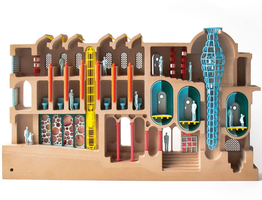 Fig. 4.15 Brook Ting Jui Lin, SF: Sanctuary City – San Francisco is known as a Sanctuary City (term used to describe practices that protect illegal immigrants). Represented through models, drawings and short animation, the project is an allegory of the current situation of undocumented immigration. Each ‘moment’ looks at one of the aspects, including attractive factors of the city, living situation, employment in underground business, mock citizen health care, secret methods of obtaining financial aids after migration and the economic benefits undocumented immigration brings back to the city. Collection of models. Fig. 4.16 — 4.17, Fig. 4.18 (Overleaf) Brook Ting Jui Lin, Expo 2020 Transit Ferry Terminal – The Terminal is designed to serve Expo visitors traveling from the east coast of the Bay Area to the