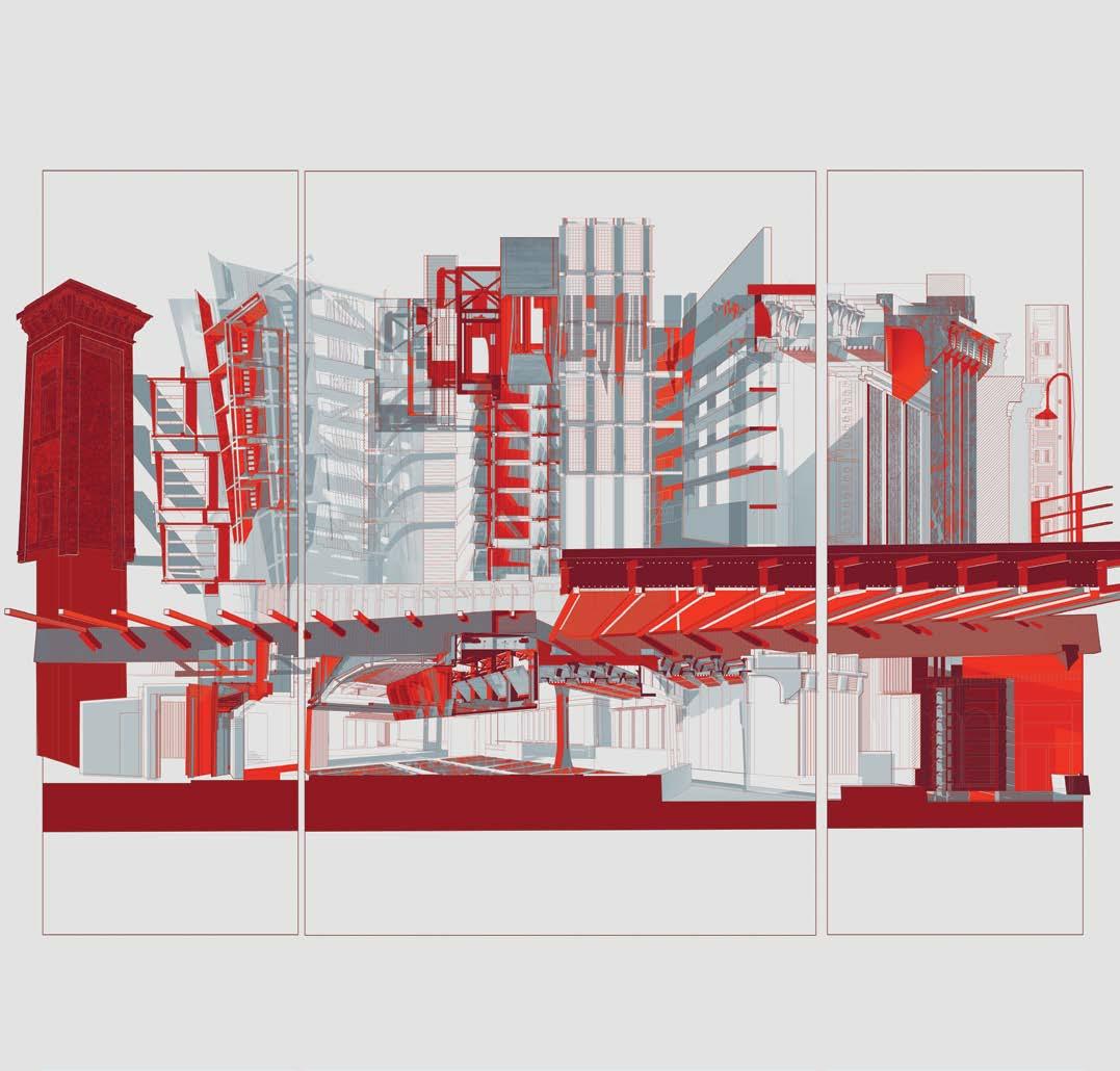 In the final project we went to New York to explore the raised territory of the Highline Focusing on the sectional cut along the block running between West 15th and West 18th Street and from the waterfront to Broadway, our site exists as a nodal point on this section line, defined by the intersection of the High Line and 10th Avenue We explore the making of an infrastructural programme engaging the interchanges and intersection of the city The programmes occur across time becoming the basis for a transformative architecture