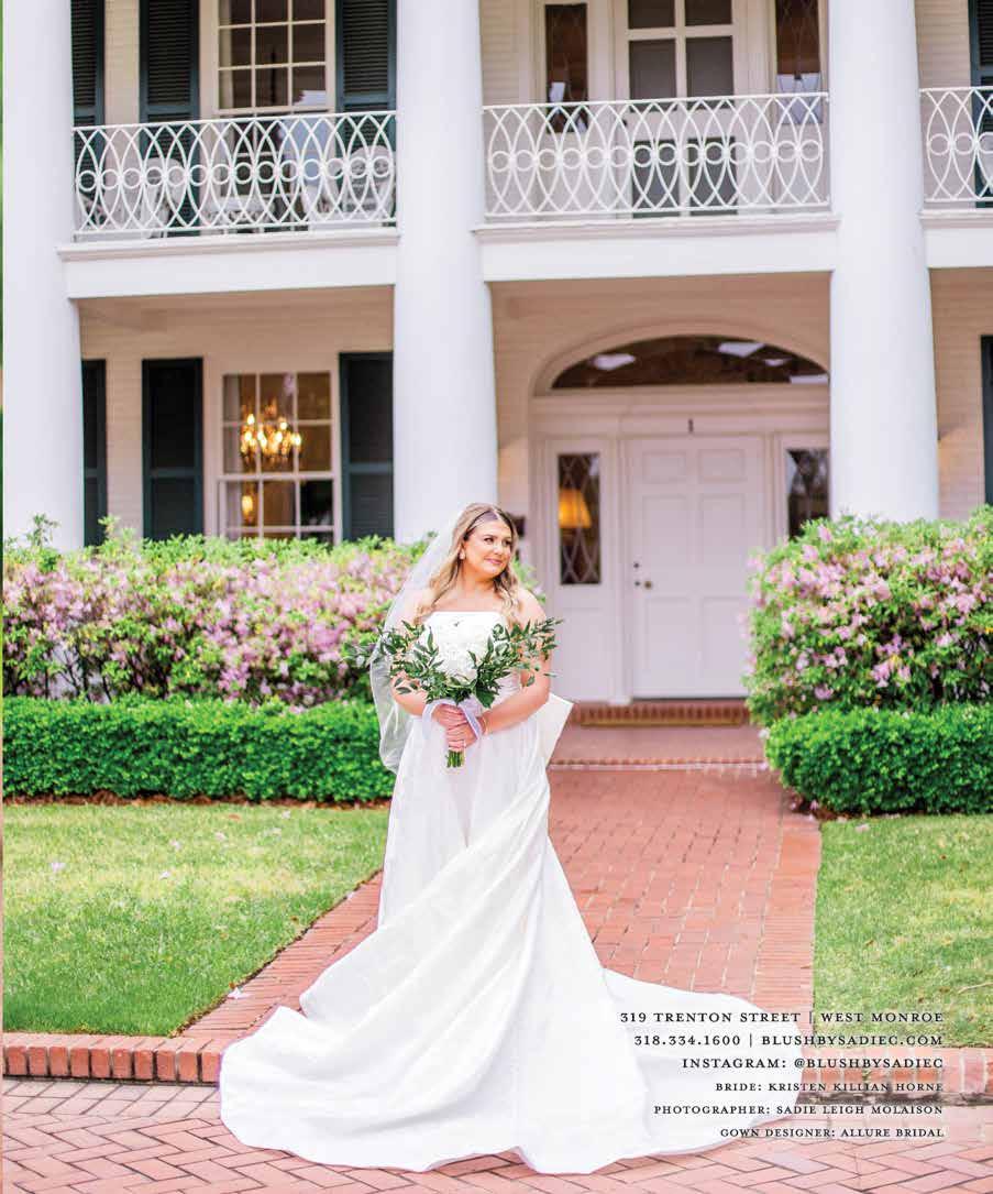 On our cover this month is the breathtaking Emmerson Britt in a wedding gown from Blush by Sadie C’s. Meka, Kelly, Nathan and Kate headed out to Logtown Estate to take these beautiful photos. While we were there, we also shot this month’s fashion shoot. Find it on page 150. Special thanks to our models, Jada George and Chevy Navaroo, for helping us pull together a great “Bridal Party” shoot.