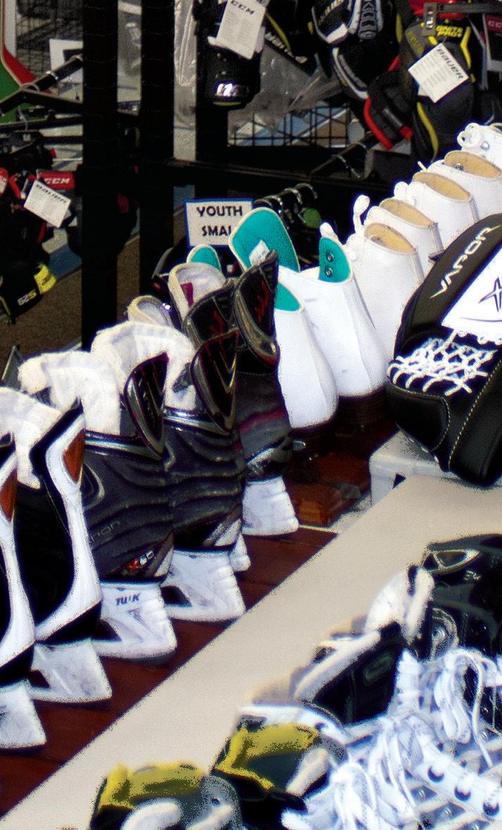 Gerrells sells new and used skates, sticks, pads, helmets, and anything else you might need to play hockey. They also have some skate rentals available. Additionally, they offer skate sharpening, skate repair, and a lease program.