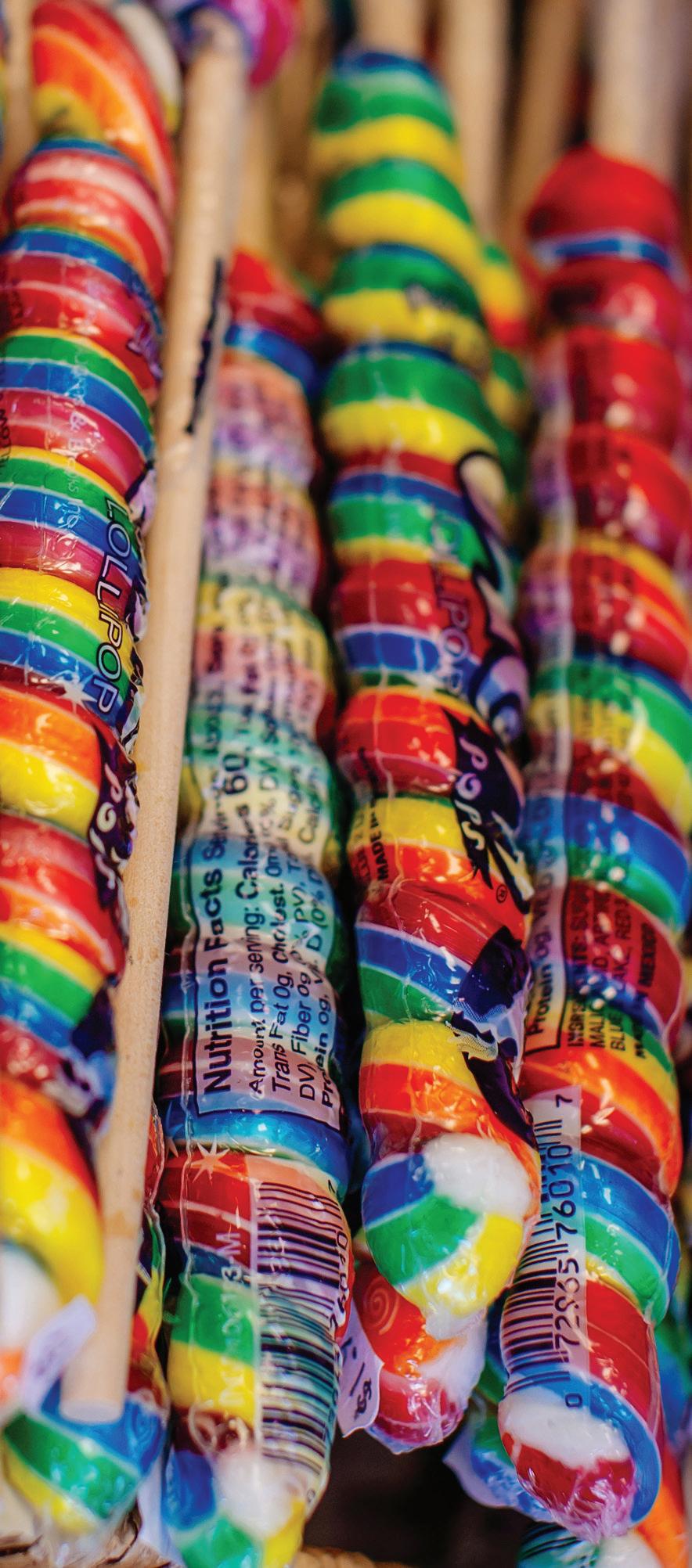 candy shop storefronts, glass cases displaying a variety of sweet confections, many of which are still in production today, and portraits of the Widman’s store owners grace the walls and pay homage to the Widman legacy.