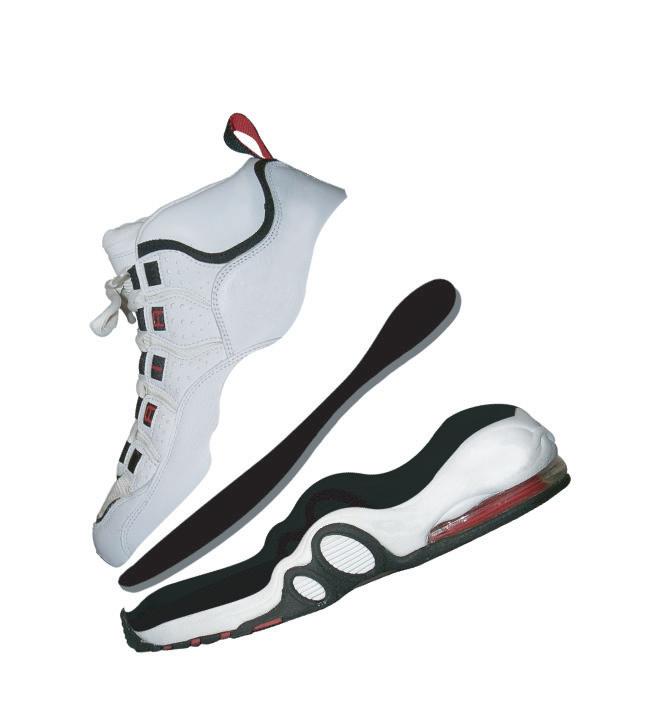 2. What are the three parts of the sneaker? What materials is each part made of?