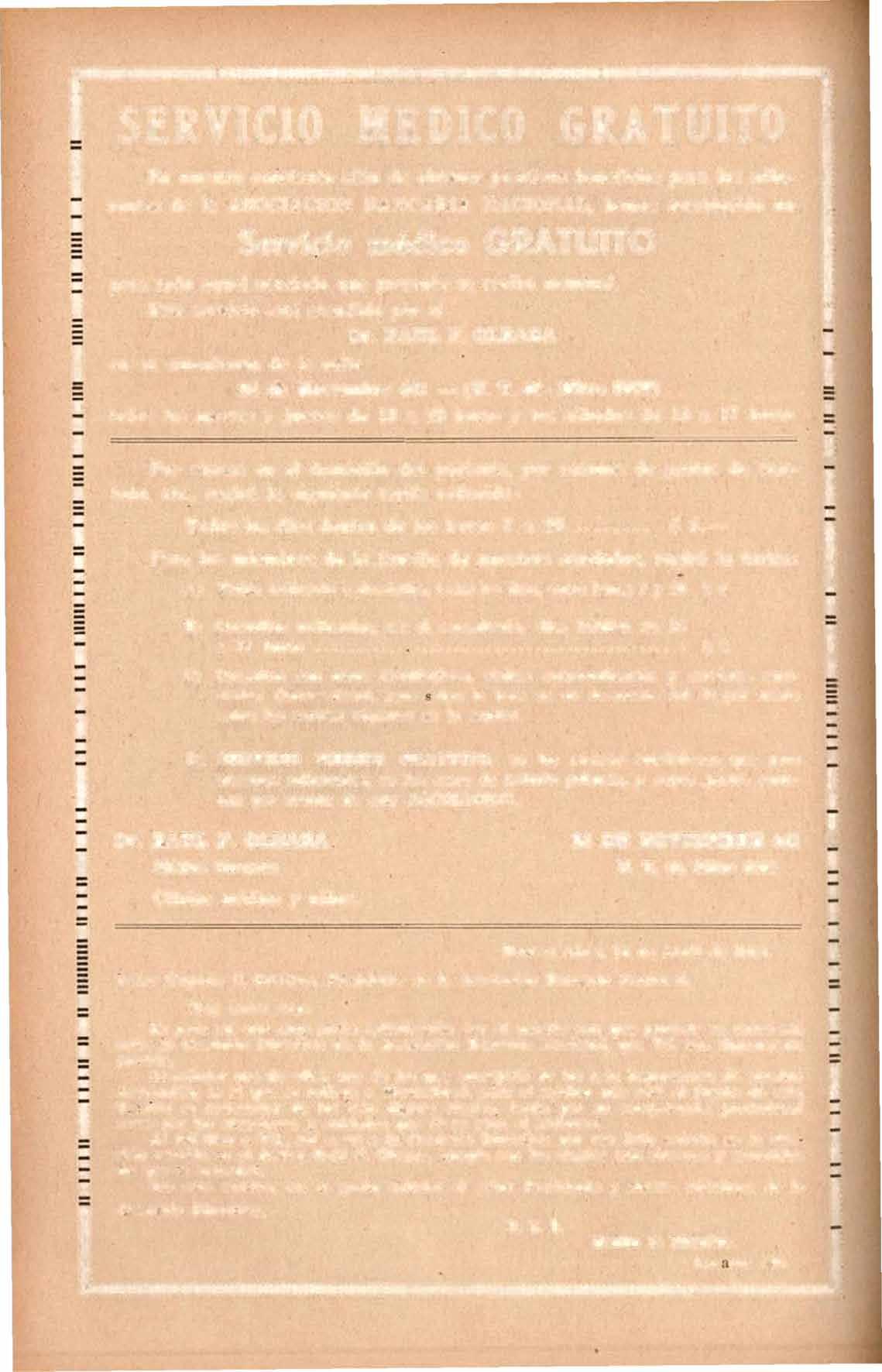 SERVICIO MEDICO GRATUITO: �\tendido por el Dr. lL\LL F. OLE.\GA - 24 de Ko\'ieinbre 441.(U. T. 6� - �litre 5859).