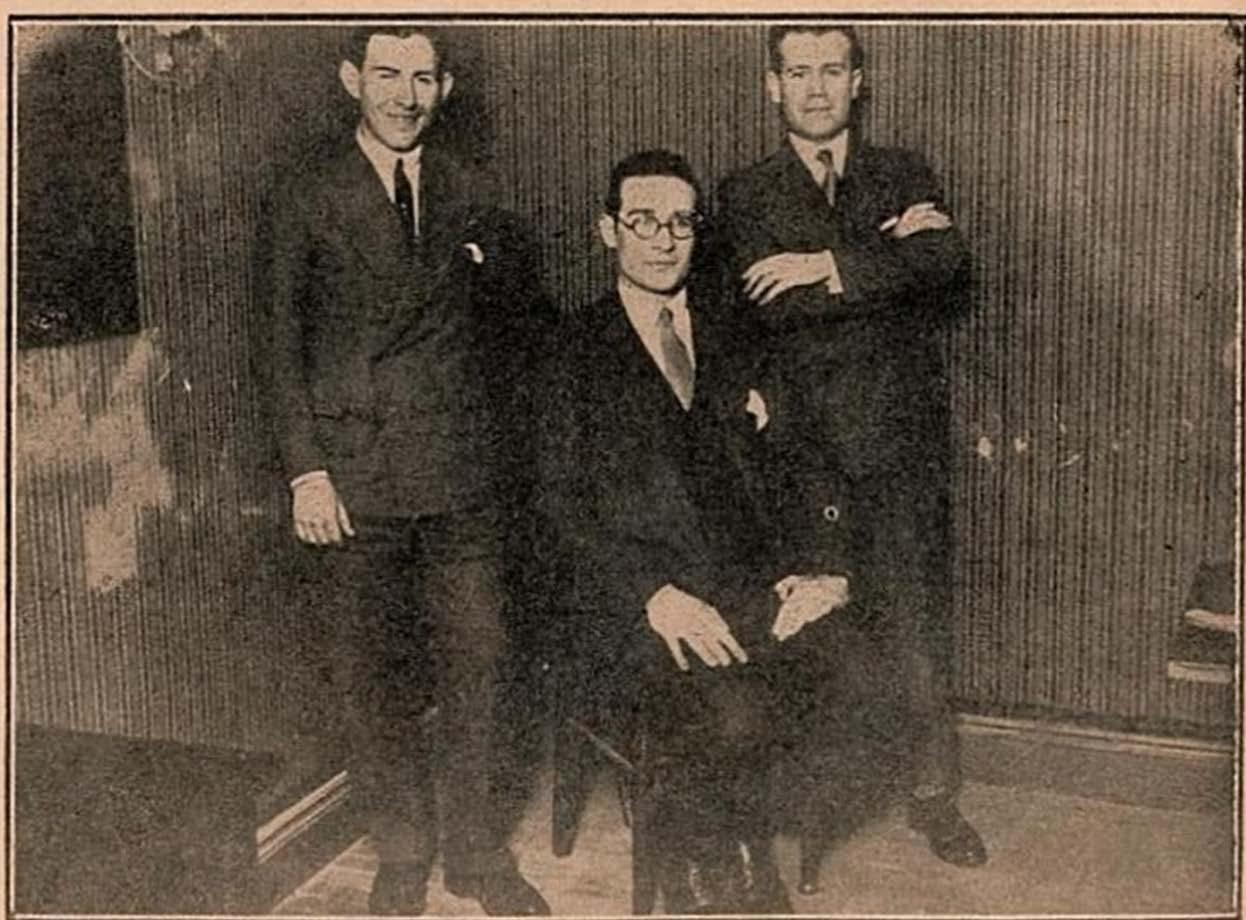 Los almnnos premiados en los diversos cursos: Sentadas, señoritas Velia Alvarez. Bozidara Brinsek y Tomasa Sánchez Dnffy: parados, sefiorcs Emilio González. Mattiuiano P. Cejas. Pedro J. Salis. Manuel A. Femández e Ismael G. Blancat.
