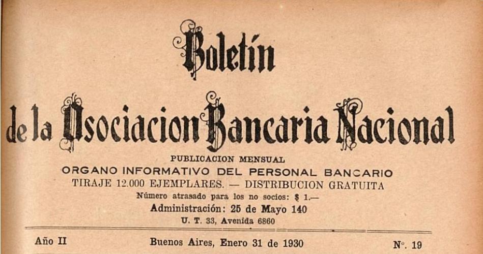 Boletín de la Asociación Bancaria Nacional / Asociación Bancaria, a. 2, n. 19, ene 1931.