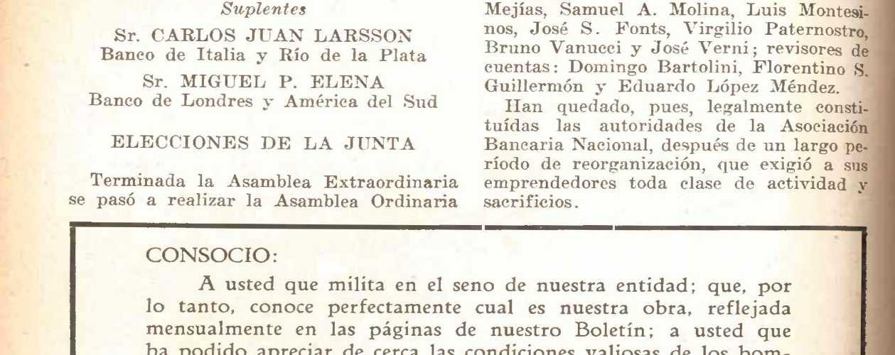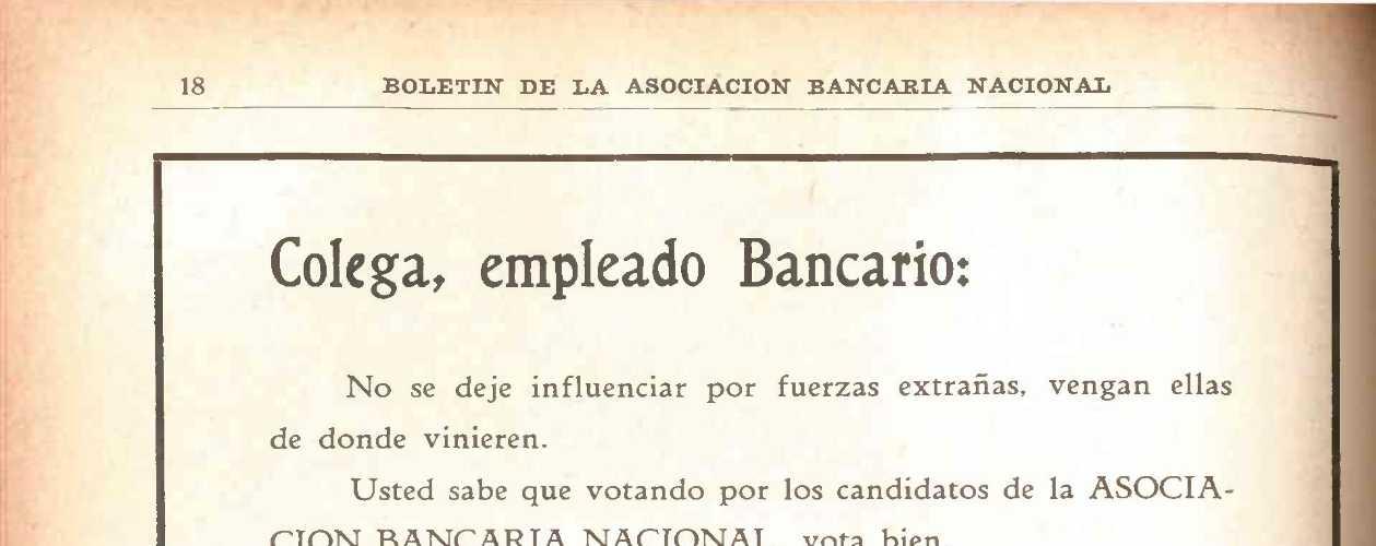 Boletín de la Asociación Bancaria Nacional : órgano informativo del personal bancario. Cambio de título: hasta 1934 como Boletín de la Asociación Bancaria, titulo posterior “Acción Bancaria” a partir de 1935, continuo con el mismo propósito inicial, ser una vía de comunicación entre la Asociación Bancaria y los empleados bancarios de todo el país. Existencias en la colección impresa: Existencias: 1928-1934. (Boletín). 1935-1948, (1949-1954), 1955-1957. (Acción Bancaria). Numero presente en la colección impresa de la Biblioteca Tornquist), solicitar por: BCRA-BT:REV. 216
