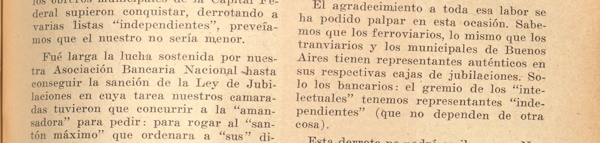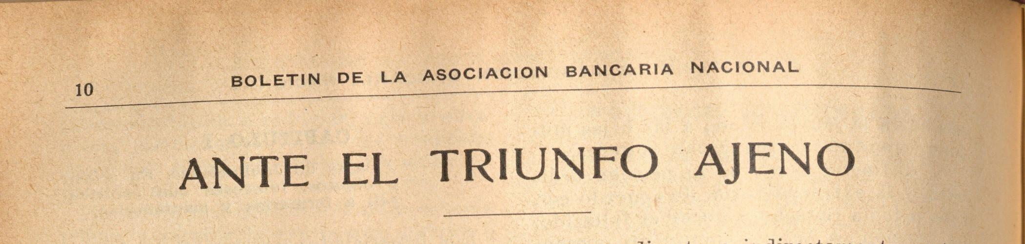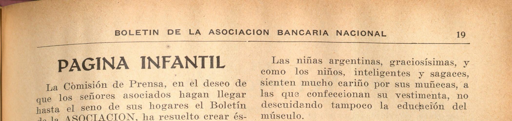 Boletín de la Asociación Bancaria Nacional : órgano informativo del personal bancario. Cambio de título: hasta 1934 como Boletín de la Asociación Bancaria, titulo posterior “Acción Bancaria” a partir de 1935, continuo con el mismo propósito inicial, ser una vía de comunicación entre la Asociación Bancaria y los empleados bancarios de todo el país. Existencias en la colección impresa: 1928-1934. (Boletín). 1935-1948, (1949-1954), 1955-1957. (Acción Bancaria). Numero presente en la colección impresa de la Biblioteca Tornquist), solicitar por: BCRA-BT:REV. 216