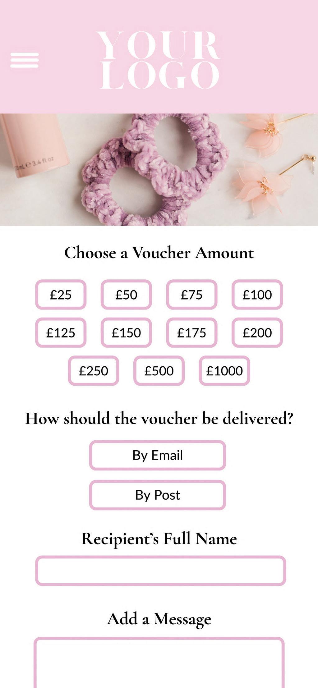 Your clients can have their gift vouchers delivered by email as an e-voucher or as a physical voucher in the post, with a personalised message for the recipient.
