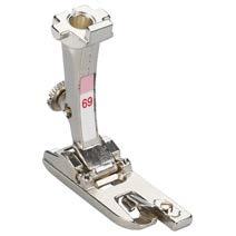С ней хорошо получаются декоративные строчки, гладьевой валик, аппликации, пришивание нитей из мерсеризованной пряжи и выполнение воздушных фестонов. С ней возможно также получение рельефных эффектов. Небольшое отверстие в середине лапки служит направляющей при обшивании вкладной нити. Прозрачная подошва постоянно обеспечивает свободный обзор ткани.