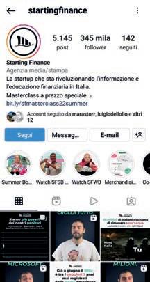Starting Finance è uno dei più importanti profili social finanziari in Italia. Su Instagram offre dati e analisi dell’economia sia italiana sia internazionale, oltre a informazioni su grandi imprenditori e aziende.