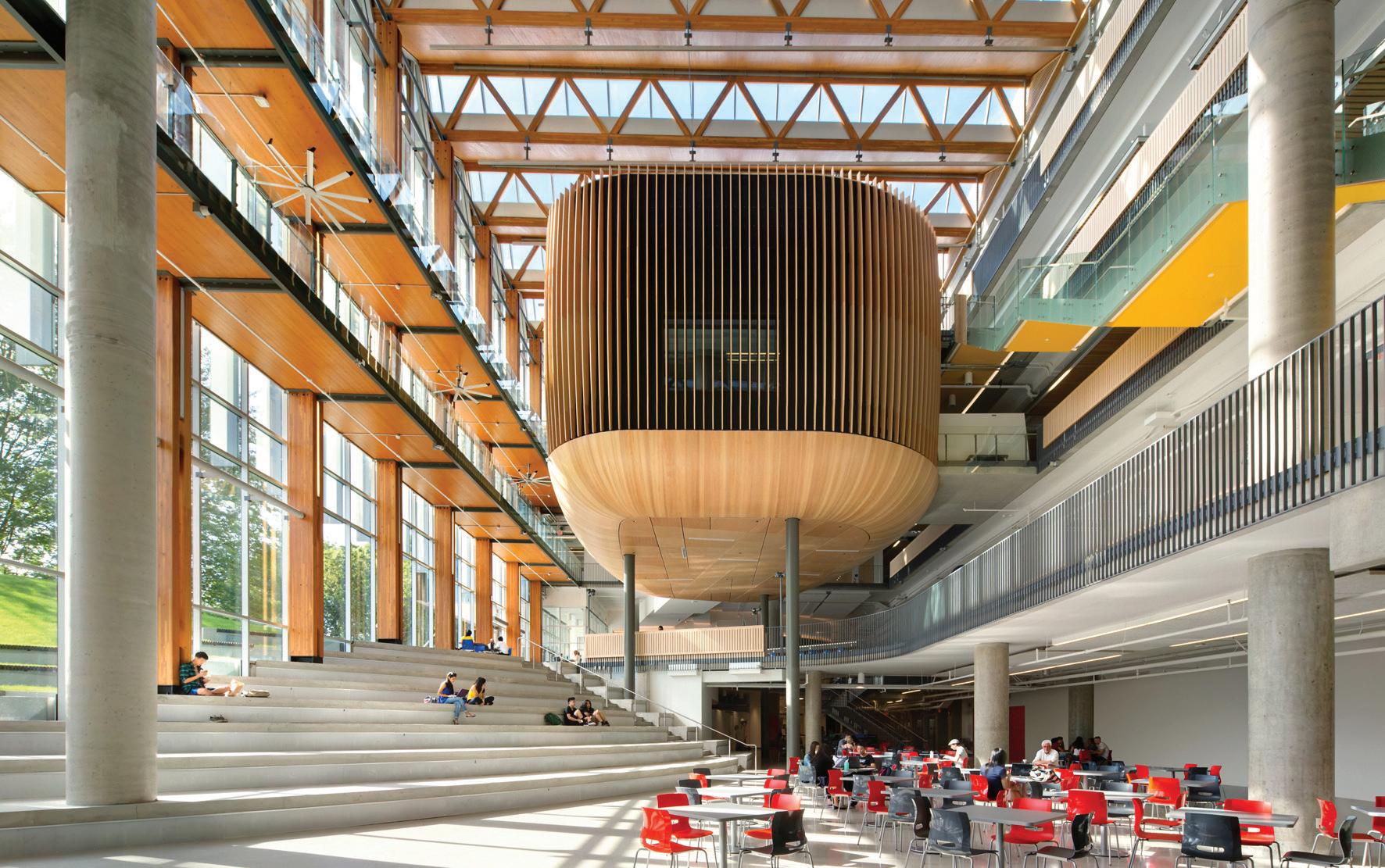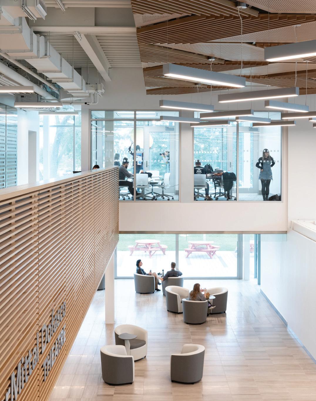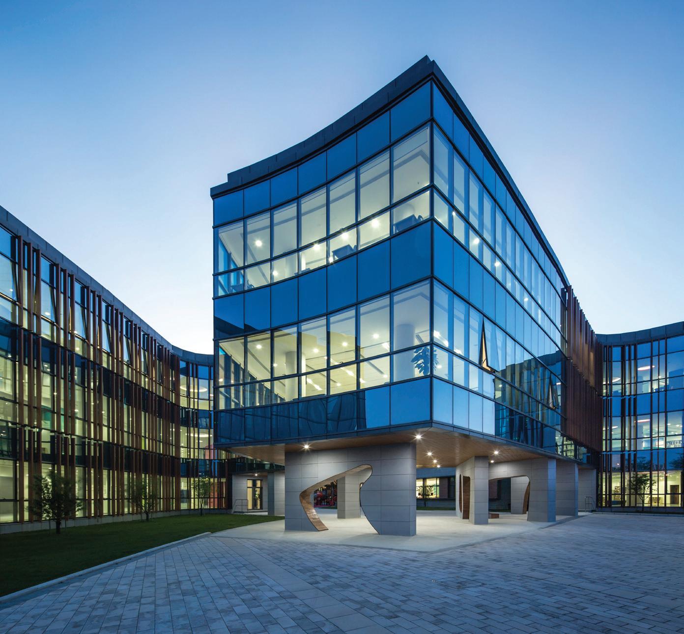 The Engineering, Management and Education Building contains both the Faculty of Applied Sciences (Engineering) and the Faculty of Management. The two buildings are connected by a central atrium and organized around shared amenities, including common areas, classrooms, lecture theatres and a collegium. Within each faculty area there are customized faculty and administration offices, a variety of teaching and research labs as well as library facilities. The modularized building form is designed to easily adapt to future expansion.