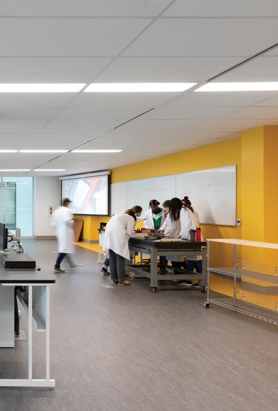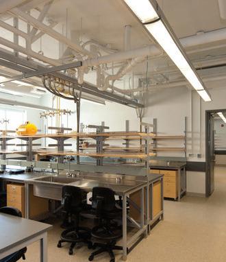 The west side of the Engineering and Management building contains three stories of laboratories. Engineering lab spaces contain skylights for natural day lighting and reduce the overall load on artificial lighting. The use of natural ventilation and day lighting has been employed throughout, with as many labs, offices and classrooms as possible having both operable and vision windows.