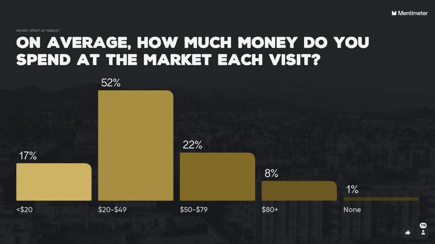 A customer survey was available from June 15-August 10, 2024 to solicit a different perspective about the BCFM. A total of 124 responses were collected – seven responses more than the totals for the previous three annual customer surveys combined. The survey was hosted on Mentimeter.com and participants were free to take the survey on their own time. Eight questions were asked that included a variety of question formats including multiple choice, ranking, and open-ended comments. The following sections present the survey results by question.