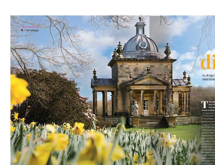 The Royal Crescent Hotel & Spa has a new ‘Bath on Screen’ package, which includes a two-hour tour of Bridgeton filming locations, led by a guide. The package includes a twonight stay, one lunch, and unlimited use of The Spa & Bath House. Priced from £934 per room. royalcrescent.co.uk •