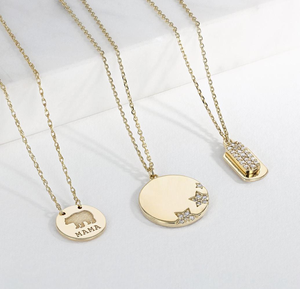 14 THE BORSHEIMS PRICE 14K White Gold Diamond Icon Necklace, 18" $135 $180 3NS002050 14K Yellow Gold Diamond Pave Layered Tag Necklace, 18" $683 $910 3DI004844 14K White Gold Cube Station Chain, 18" $312 $415 3NS002056 Pesavento 18K Yellow Gold Vermeil Link Chain, 32" $1,441 $1,696 3NS001829 14K Yellow Gold Mama Bear Necklace, 18" $188 $250 3NS002051 14K Yellow Gold Diamond Star Disc Necklace, 18" $642 $855 3DI004840
