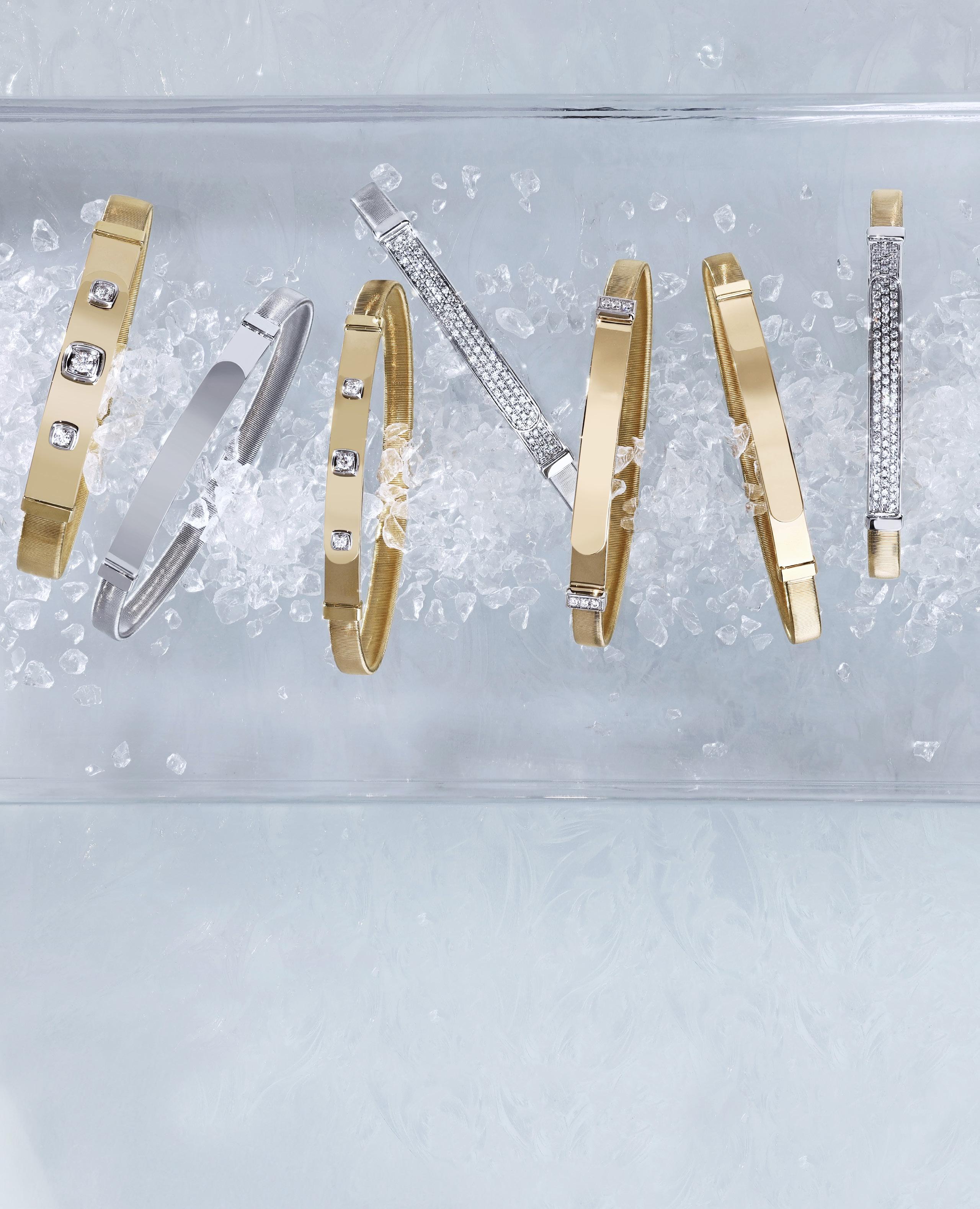Yellow Gold Coil and White Gold Pavé Diamond Bar Bangle $6,900