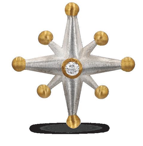 Oxidized Sterling Silver and 24K Yellow Gold Diamond Disc Compass Necklace