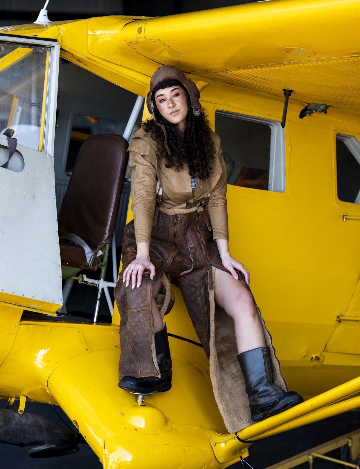 Boulevard’s fashion team members were like kids in a candy store as they delved into the incredible collection of aircraft and artifacts at the BC Aviation Museum, located on the grounds of the Victoria International Airport at 1910 Norseman Road. Treated to a backdrop of beautifully restored candy-red and bumblebeeyellow aircraft, the team also had the opportunity to view a collection of aviation-related clothing and uniforms, including a First World War air force jacket belonging to a former Victoria high school student, Second World War jackets and flight suits, vintage stewardess uniforms from the ‘50s, ‘60s and ‘70s, and a plethora of retro pillbox hats, helmets, leather caps and vintage goggles. As lovers of fashion, the team could have spent a whole day “oohing” and “aahing” over these pieces, which are under the care of Michelle Harris, a museum volunteer tasked with preserving this incredible collection. Each beloved aircraft has a story, a past and a purpose. It was an honour to photograph our feature among some of BC’s most treasured history.