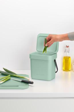 Los coquetos cubos de 3 y 6 litros con tapa que se mantiene abierta son ideales para peladuras, desperdicios, sobras... en realidad, para todos los residuos orgánicos de la cocina. Sólo tienes que colocarlo en la encimera, en un cajón o fijar el de 6 litros a la pared. ¿Y quieres una bolsa de basura a juego?
