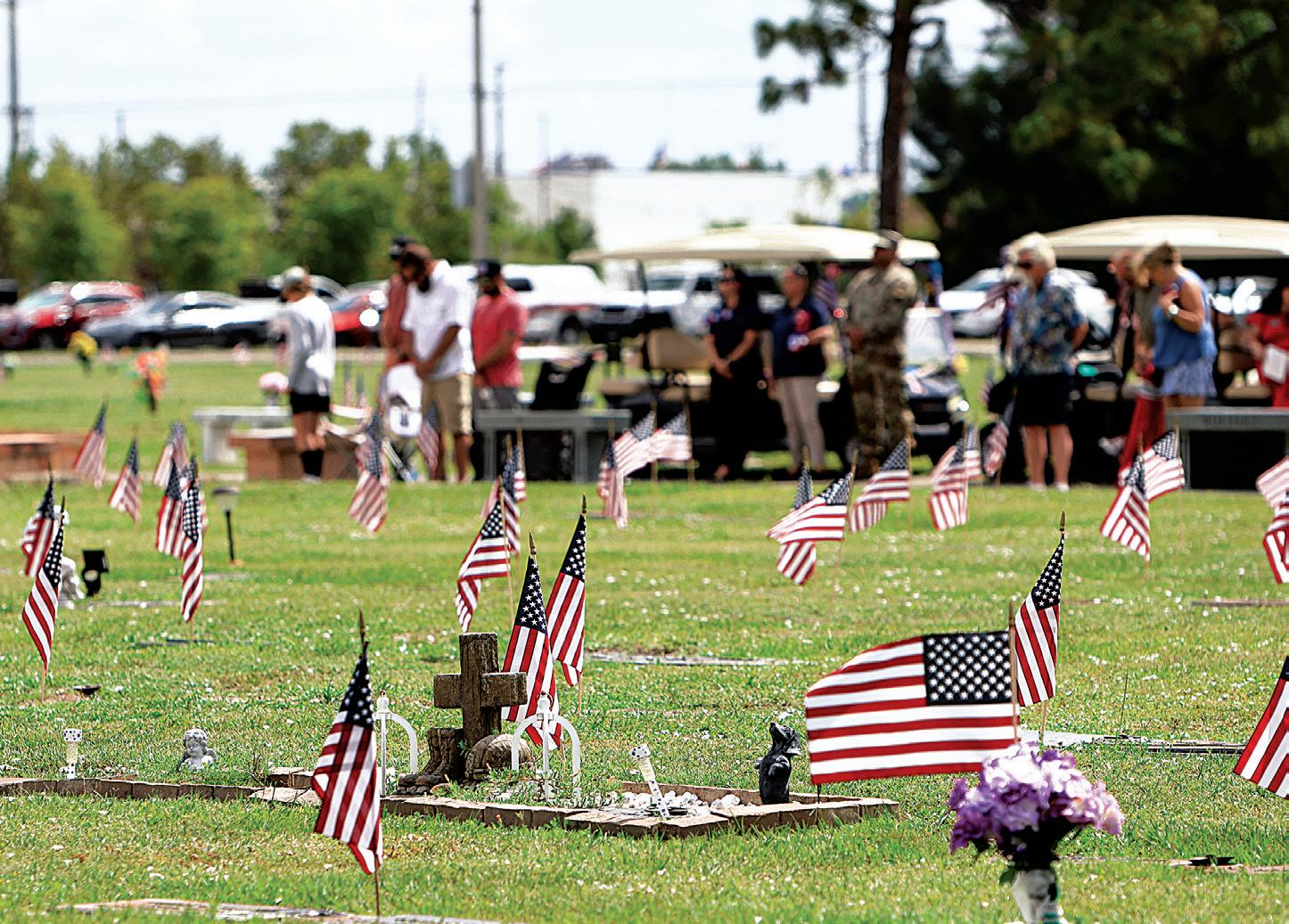 Center below: Flags decorate graves at Coral Ridge Cemetery on Memorial Day and, right, Gold Star father Bill Eggers shares the story of how his son, Capt. Daniel Eggers, died in combat in Afghanistan in May of 2004.